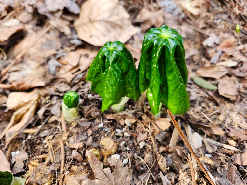 But, the native mayapple (Podophyllum peltatum) is ephemeral. In the heat of late spring, and with diminishing water availability in competition with greedy forest trees, mayapples go dormant. Apparently, one of the two Asian mayapples did the same while the other had sufficient resources to continue to grow above ground. But today, instead of only one, both have multiplied so that instead of two leafy umbrellas, there will be six or eight. There are regular disappointments in the garden, but more occasions that bring joy.