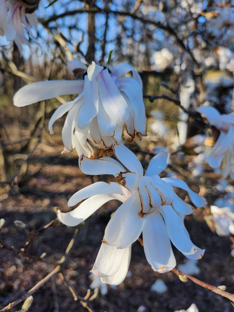 While early flowering ‘Merrill’ and ‘Royal Star’ are most susceptible to injury (only to flowers), later flowering magnolias were not damaged. I look forward to pale yellow blooms from ‘Elizabeth’ and brighter yellows from ‘Yellow Bird’ (and other purple flowered magnolias) and hope to equal the glorious week of flowering before the next spell of cold.