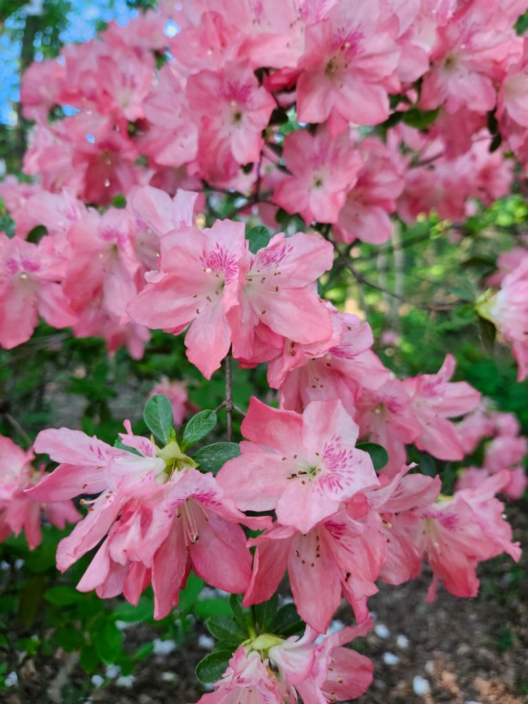 Start to finish, this is seen for two weeks. And then, it’s over until late April next year. While many plants in slightly different sunlight exposures stagger flowering to extend a season of bloom, the azaleas start and end within two days.