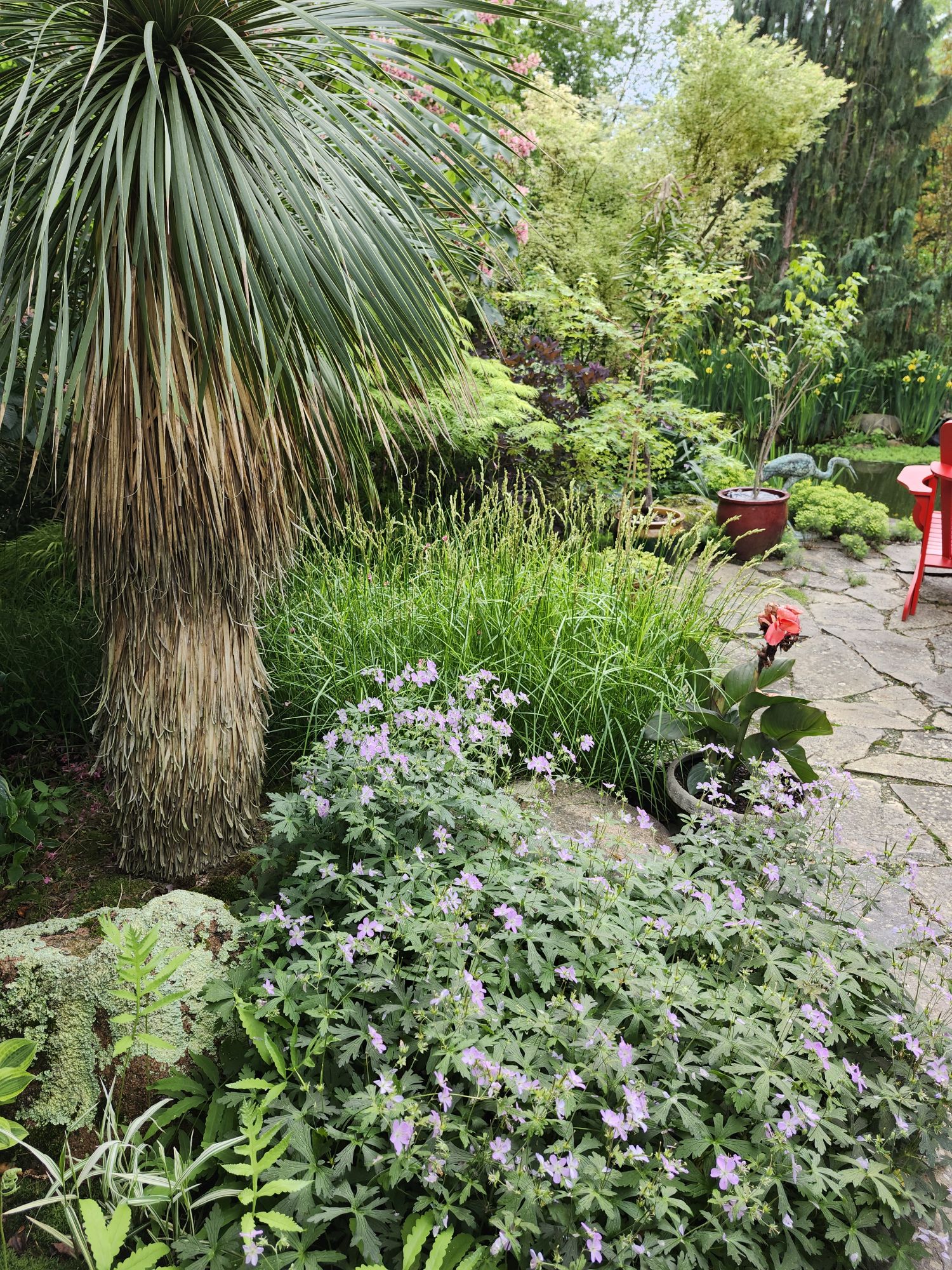 There are lessons to be learned here, somewhere. Perhaps the spurge is not such a thug, or the native geranium is a bigger one. In any case, I’m pleased the spurge was rescued and usually happy to see seedlings of ‘Espresso’. I’ve weeded out dozens of its seedlings but saved many. The garden bordering the koi pond patio is better for the happy accident that played out between two bullies.