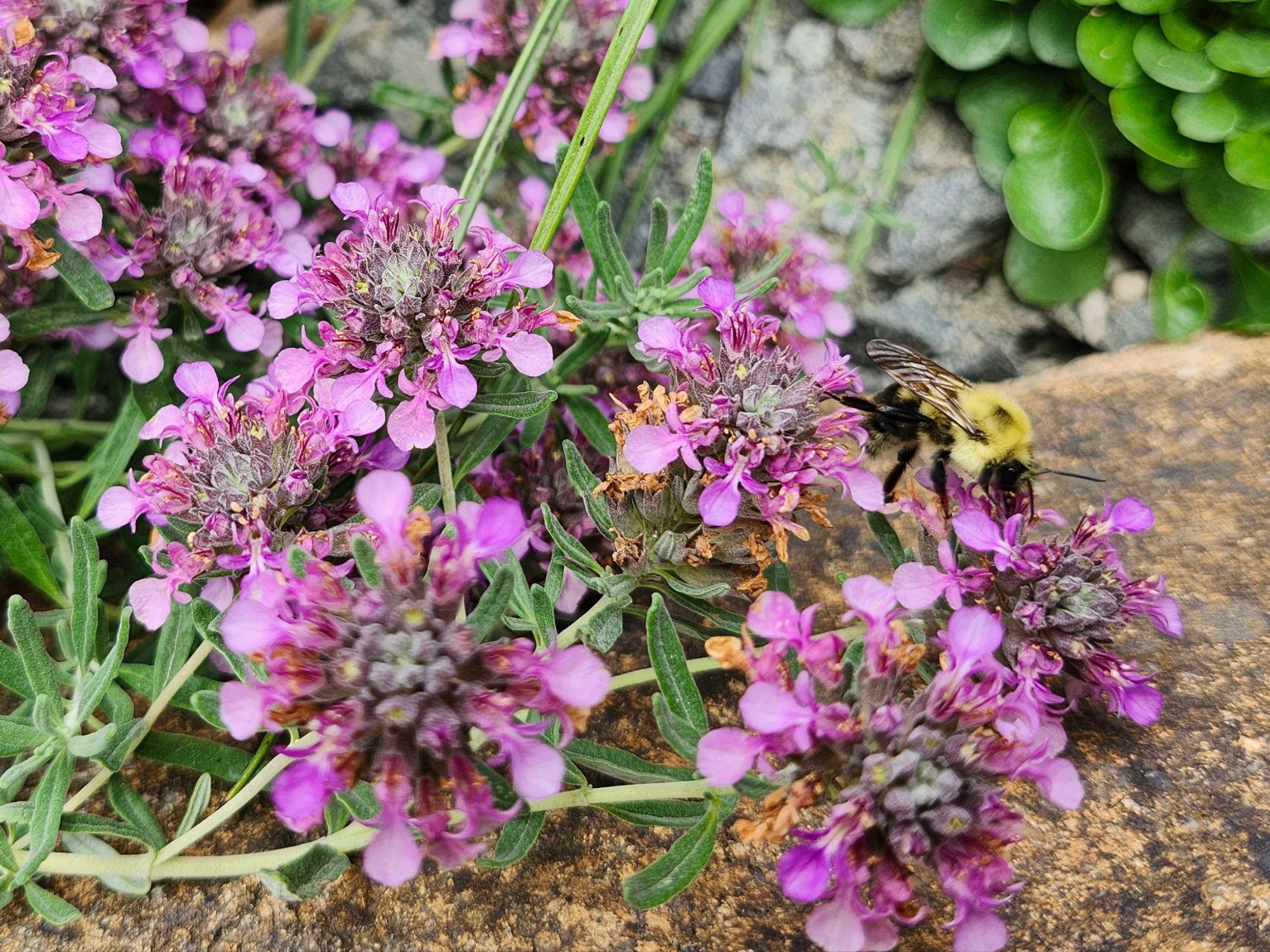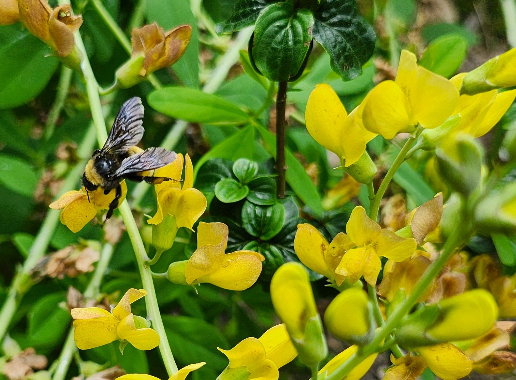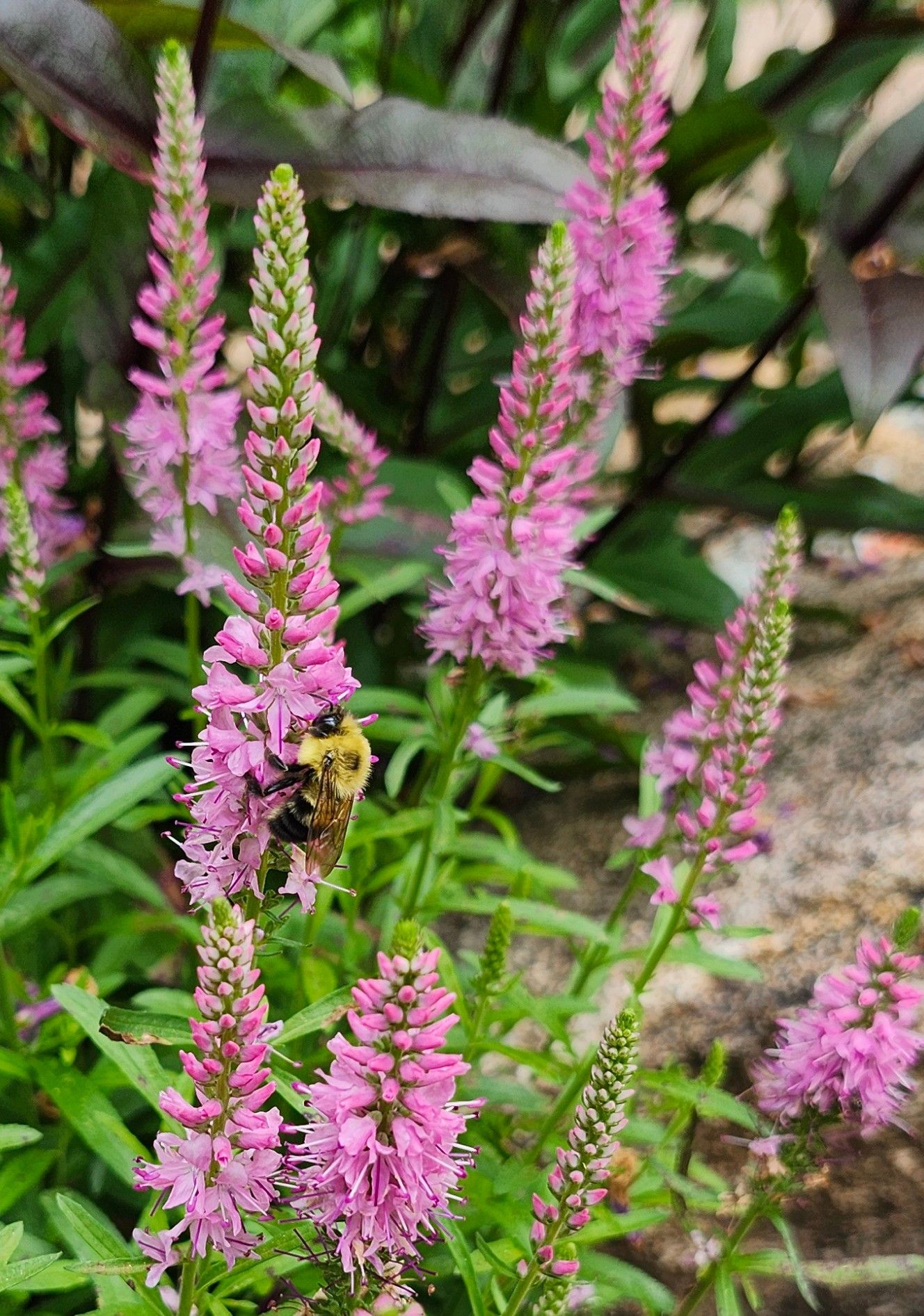 Unfortunately, I had to stop developing construction of an ill placed ground nest earlier in the spring. While bees hardly acknowledge my presence when feeding, they are understandably defensive near their nest. But, the destruction of the nest that was barely started seemingly has had no effect on the abundance of bees in the garden. The targets of their nectar gathering change regularly as plants fade and come into flower, and of course, this will continue into late summer.