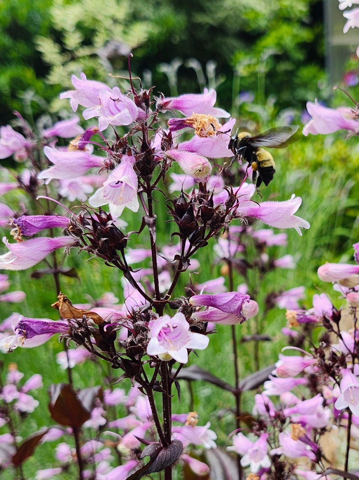 While the various pennstemons are a long blooming summer favorite, the August flowering mountain mint is the clear favorite for all pollinators except butterflies that avoid the chaos of bees, hoverflies, and wasps feeding side-by-side.