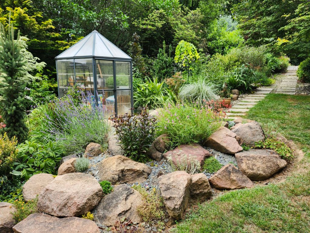 A few plants in the new rock gardens are struggling, while most are thriving in the gravel and sand soil mix. I have little experience with many of the plants, so I’m certain that a few won’t make through the heat of summer, no matter how much or little rain we have. If something doesn’t make it, I’ll replace it in September if there’s any room since several are happily spreading.