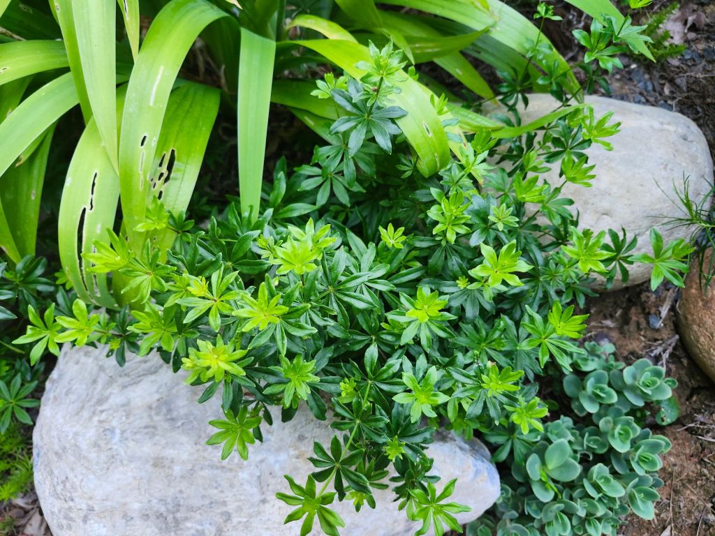 Drifts of sweet woodruff spread at the forest’s edge. The immediate plan is to transplant clumps to the area beneath the hornbeam if no better alternatives are discovered.
