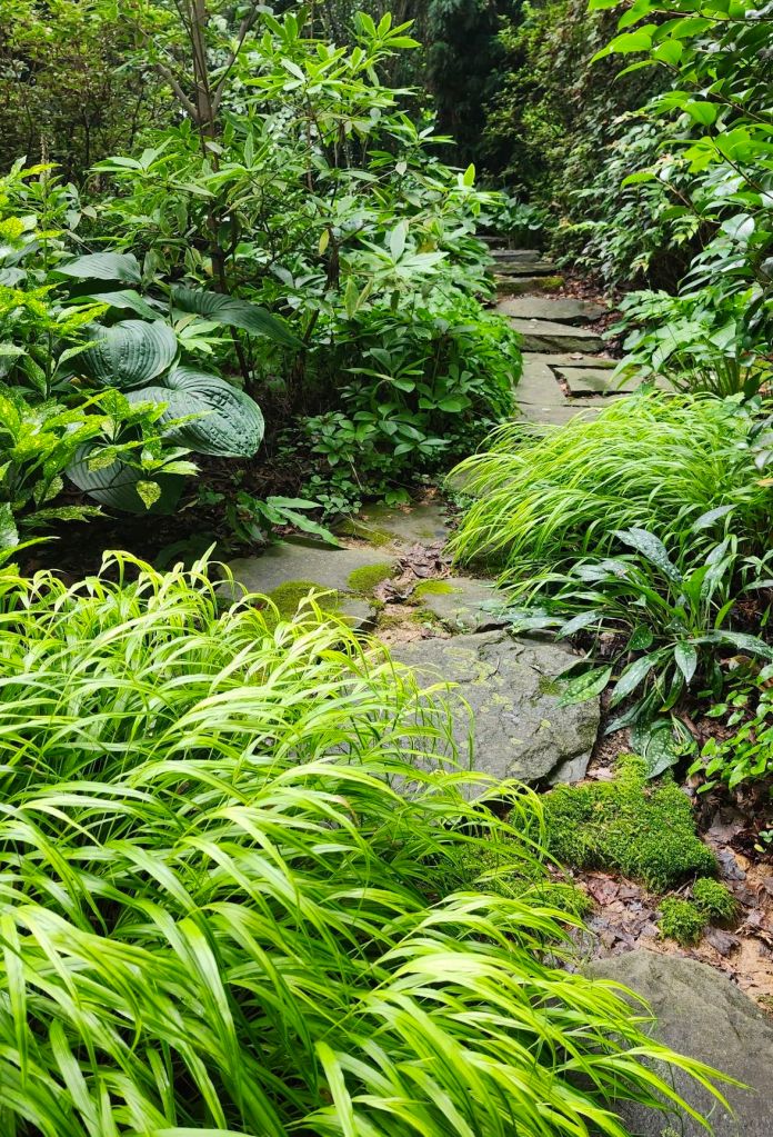 In recent years, I’ve carved spaces for redbuds and Japanese maples, even as ones planted decades earlier grow closer to the paths. Each tree must have room to show its character, though all will eventually merge into the canopy with neighbors. A stand-alone space is not required. No doubt, this is too much for some folks.