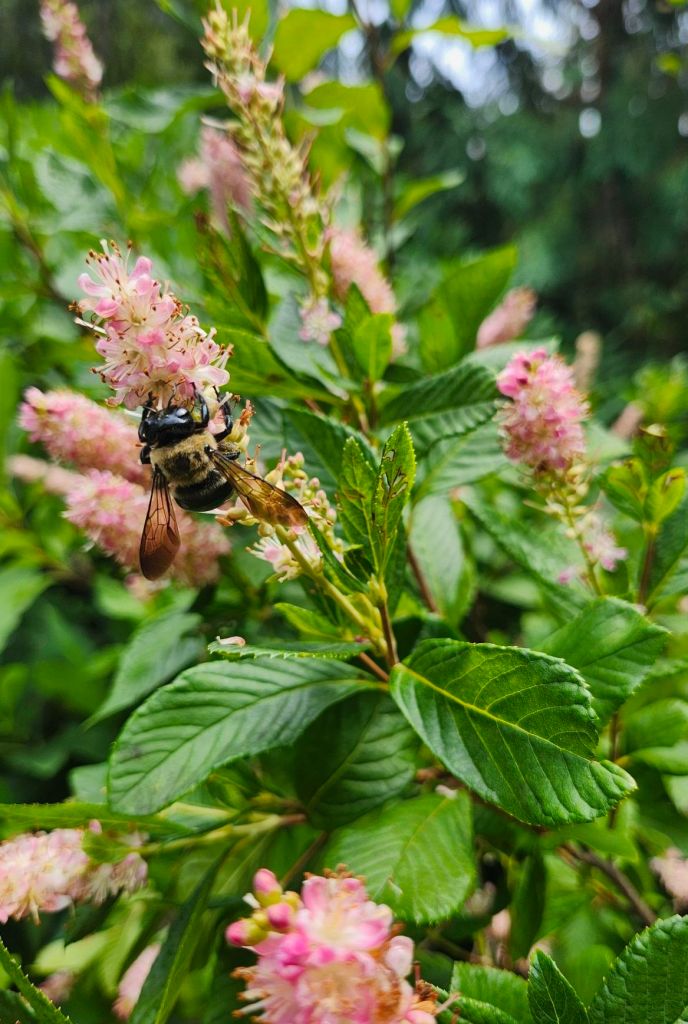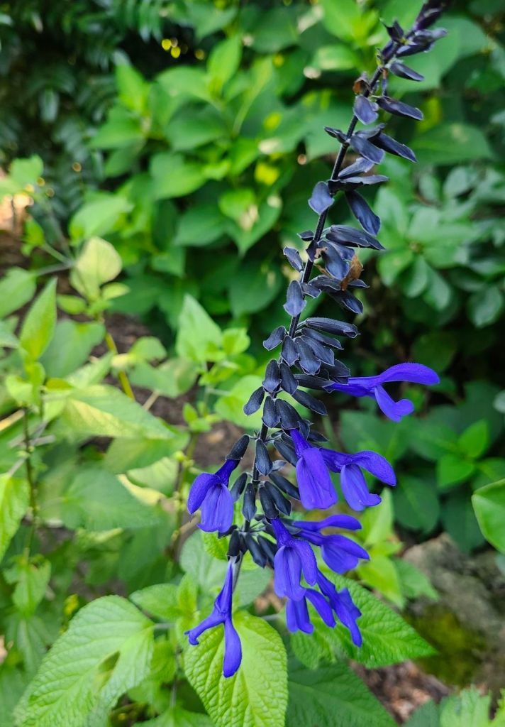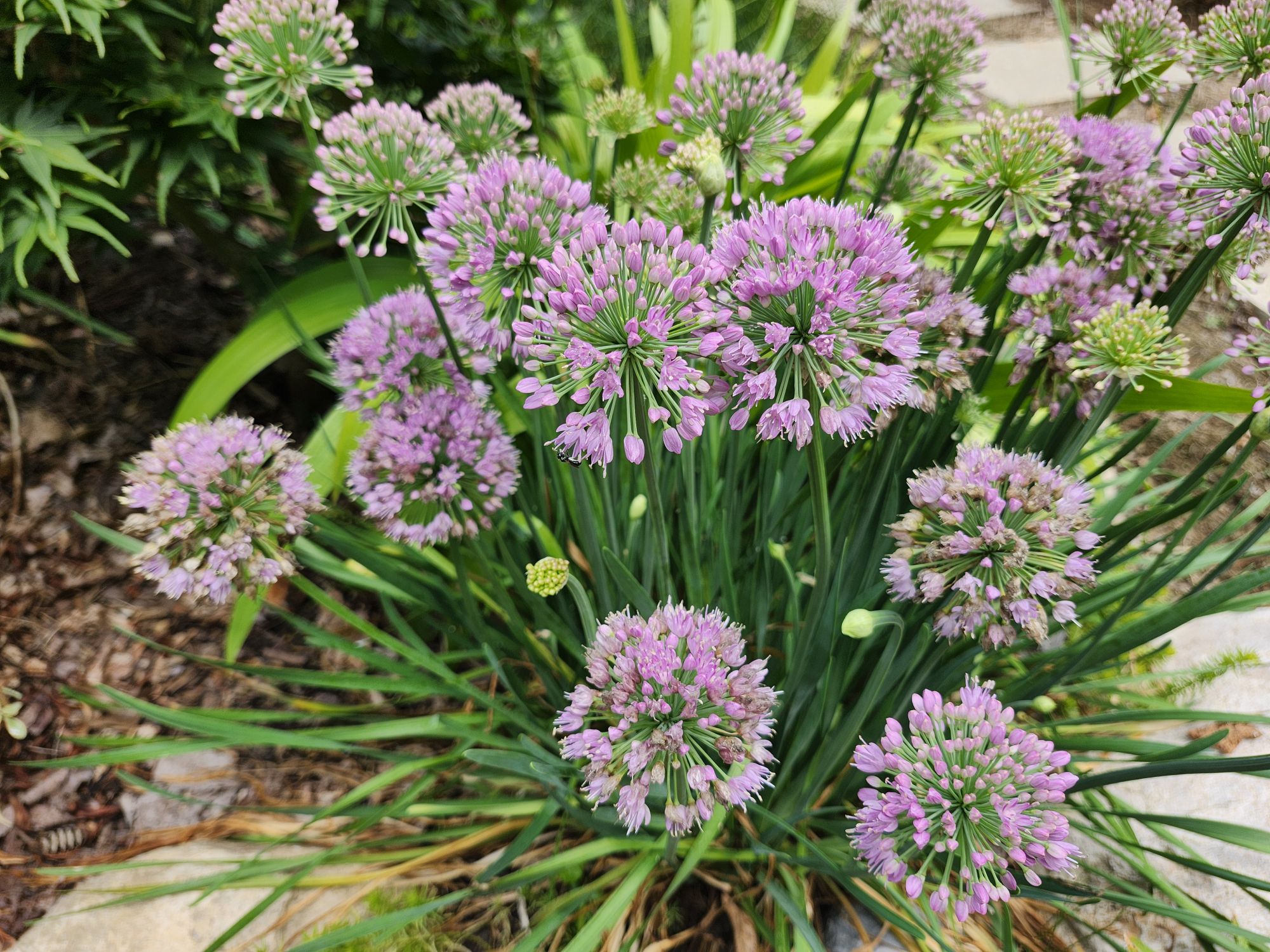 The garden is more about foliage and texture, but there are enough flowers to keep pollinators occupied through the summer.