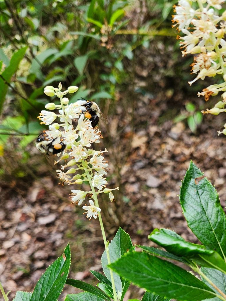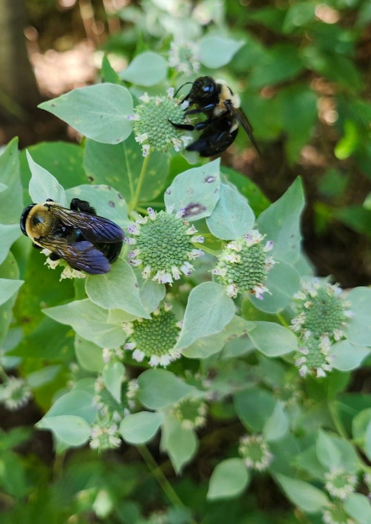 With a sampling of native and non-native flowers in the garden, there is no doubt that mountain mint is the favorite of pollinators, though butterflies steer clear of the frenzy, preferring the calmer blooms of Joe Pye weed (Eutrochium fistulosum and E. dubium, below) and bottlebrush buckeyes. Other flowers are favored by the gardener in midsummer but largely ignored except by a few scattered pollinators.