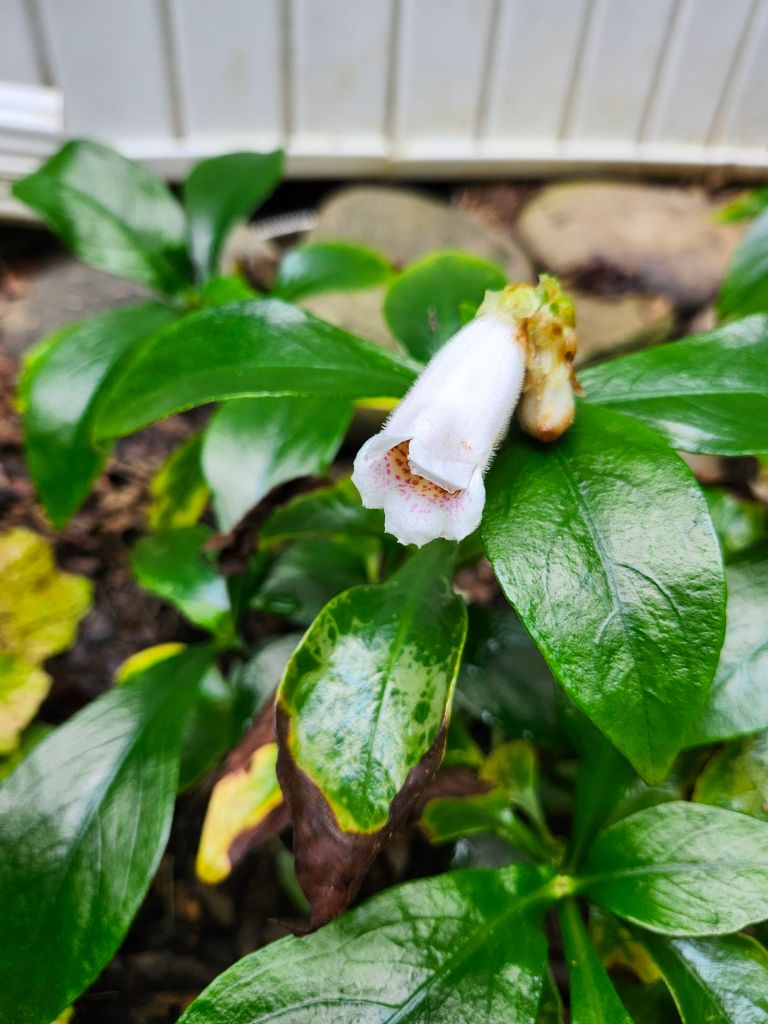 I’m quite pleased that one of two of the African violet relative Glossy False Sinningia (Hemiboea subcapitata, above) is flowering after planting a year ago. Reports of its cold tolerance are somewhat uncertain, but both survived their first winter and have grown and spread happily, though perhaps both are a bit too exposed to sun until their neighbors gain some size.
