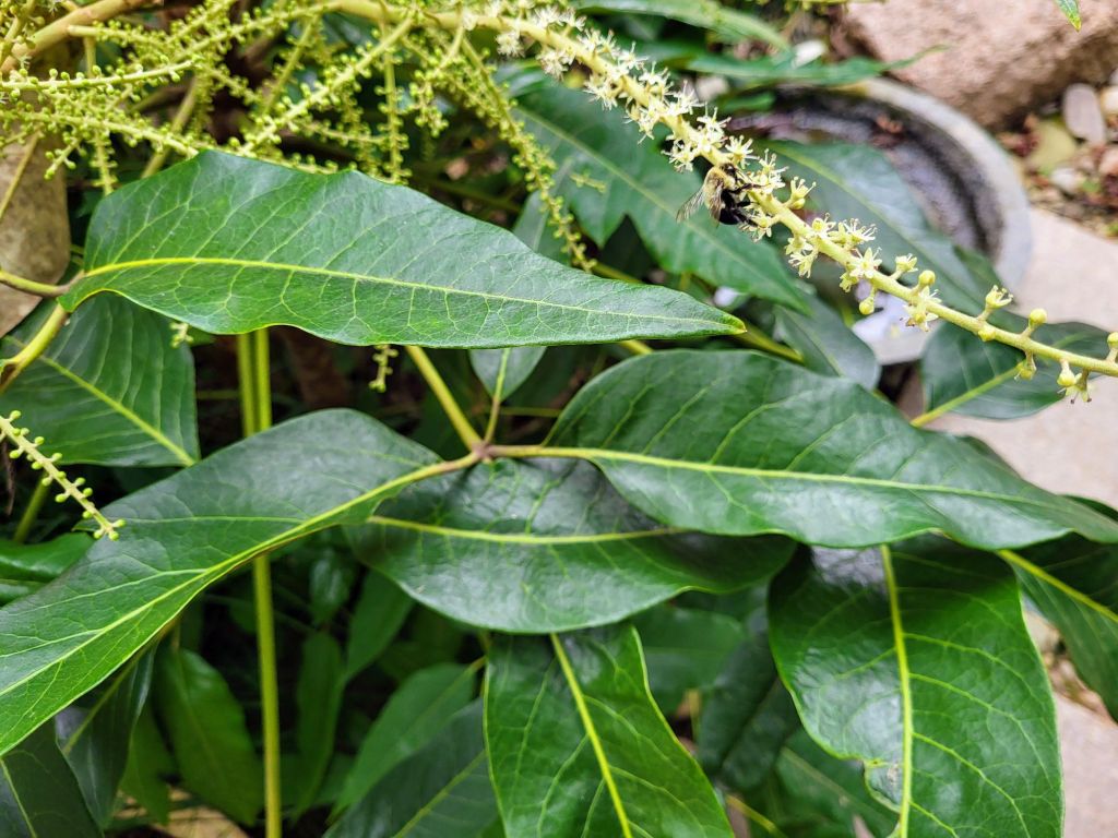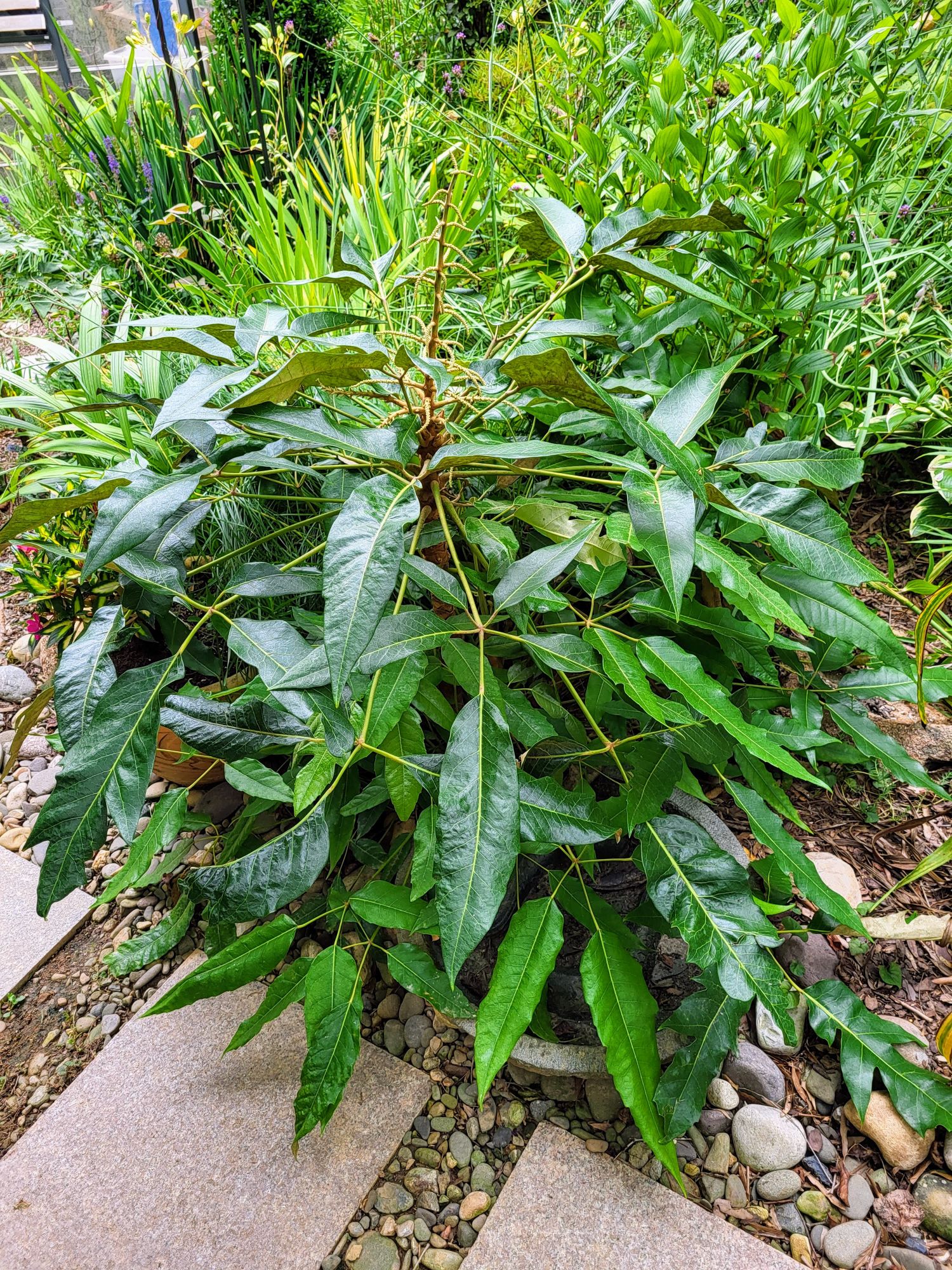 There were no flowers its first two years, but bees have enjoyed the long flowering panicles the past two. Already, it’s encroaching on the path, but I’m not likely to move it.