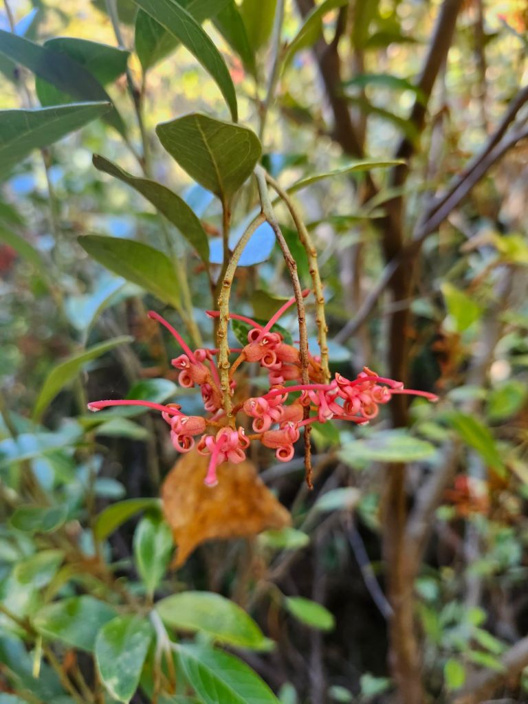 The grevillea has been in the ground for several years, so I’ve become more confident in its winter cold hardiness. While its flowers are exceptional, with the short period of bloom, I questioned its continued inclusion in the garden. But flowering in October earns its keep.