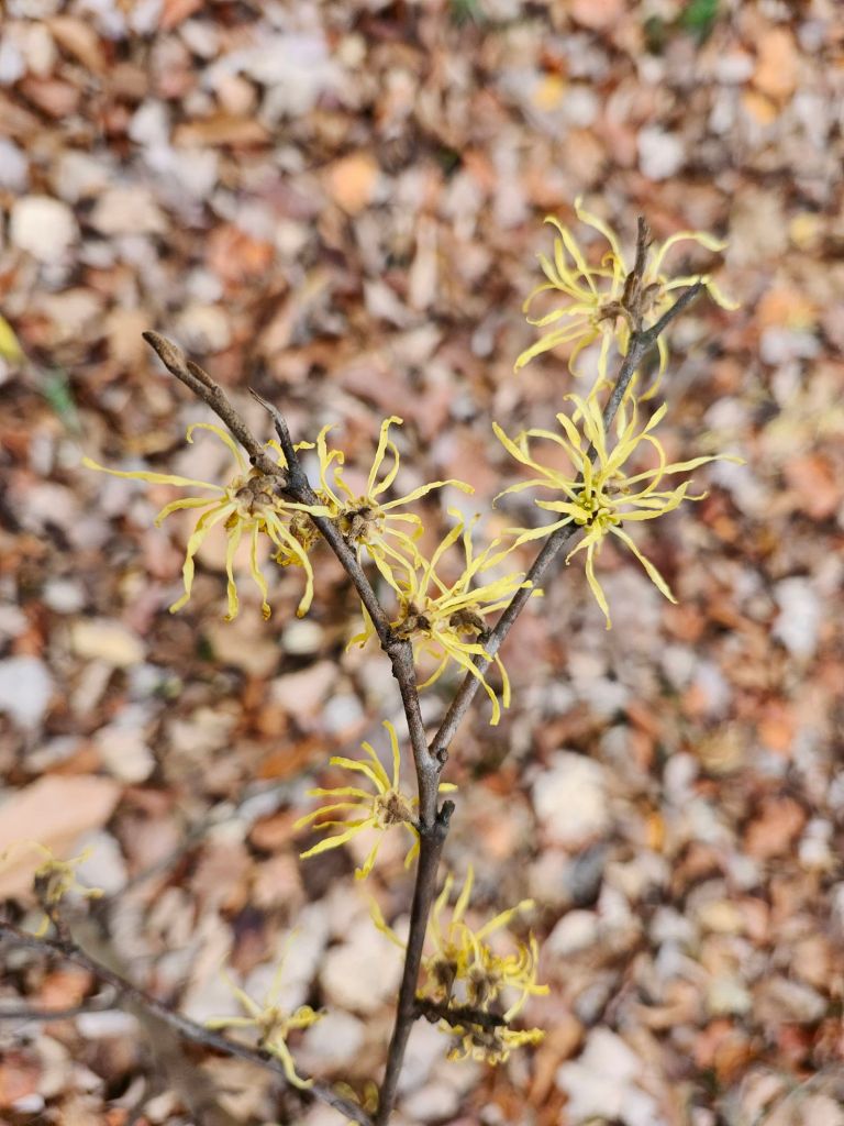 I have incorrectly stated, more than a few times, that our native witch hazel (Hamamelis virginiana, above) begins flowering in October. Indeed, several have flowered and faded in the garden, but after traveling for several days, I see two flowering today. I recall purchasing several witch hazels that were said to flower November into December. Unfortunately, and unsurprisingly, I’ve forgotten the cultivar names, and I really didn’t believe they would flower so late in autumn. How little I know.