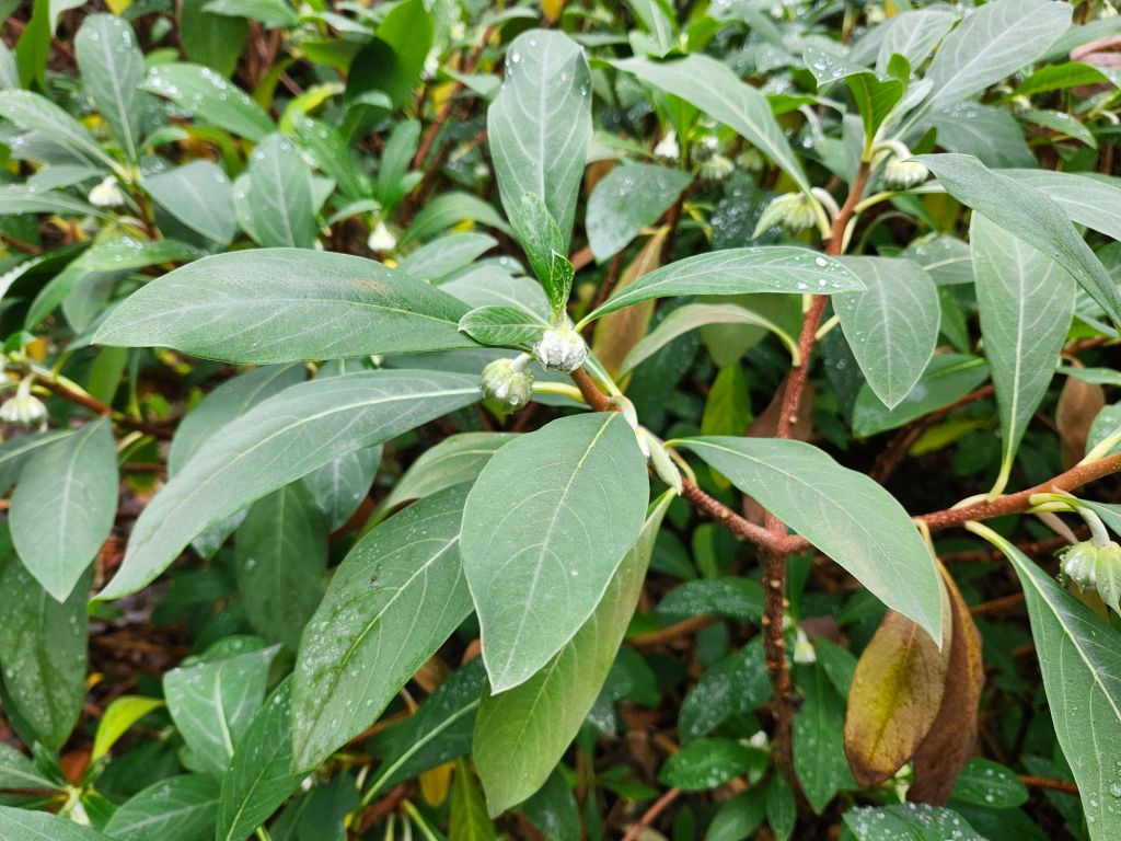 In the short term, while I’m still here, there will be annual decisions. Several paperbushes (Edgeworthia chrysantha, above) must be hacked back, or paths will disappear. Shrubs are easy, at least easier, though severe pruning of a few viburnums in the shaded side garden only delays an obvious problem. A lower branch or two must be pruned from Japanese maples that arch over paths. There’s more to be done, but that’s part of managing a somewhat mature garden.