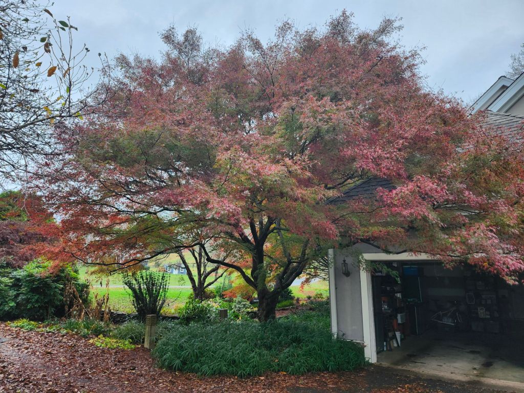 The most immediate issue is the large fernleaf maple (Acer japonicum ‘Aconitifolium’, above) that has been losing branches in recent years. I expect this favorite in declining health won’t survive more than a few years, so I’m pondering choices to replace it. I’m in no rush, but to blend with neighbors, a good-sized replacement is necessary.