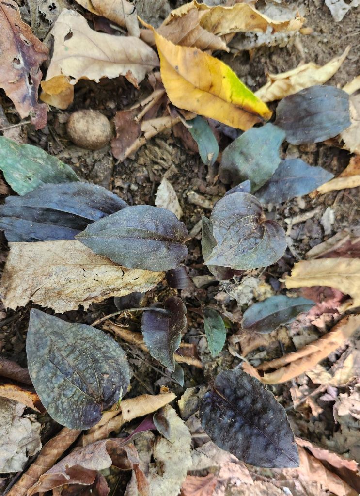 In September, I was thrilled to see thirteen leaves returning from the summer dormancy of cranefly orchids (Tipularia discolor). All but a few were purple leafed, top and bottom, with the typical foliage green with a purple underside. I see a small percentage of fully purple leaves in the wild, so this is a mutation from the typical form, but not highly unusual.