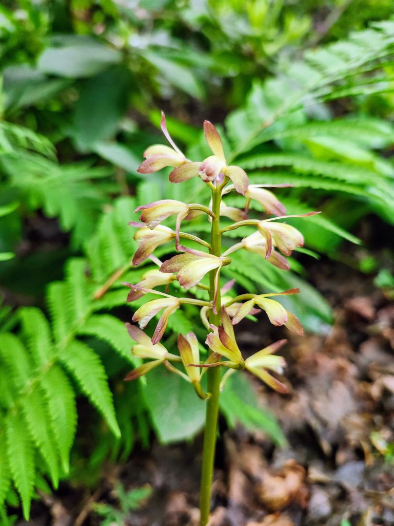 The flowers of cranefly and putty root are not eye-catching, and in the forest, they’re difficult to spot in the cluttered understory. They’re equally hard to see in the garden, but I cherish these and other native and non-native orchids. If I’m lucky, there could be a few smaller corms still down there, but if not, I might have to go without craneflies.