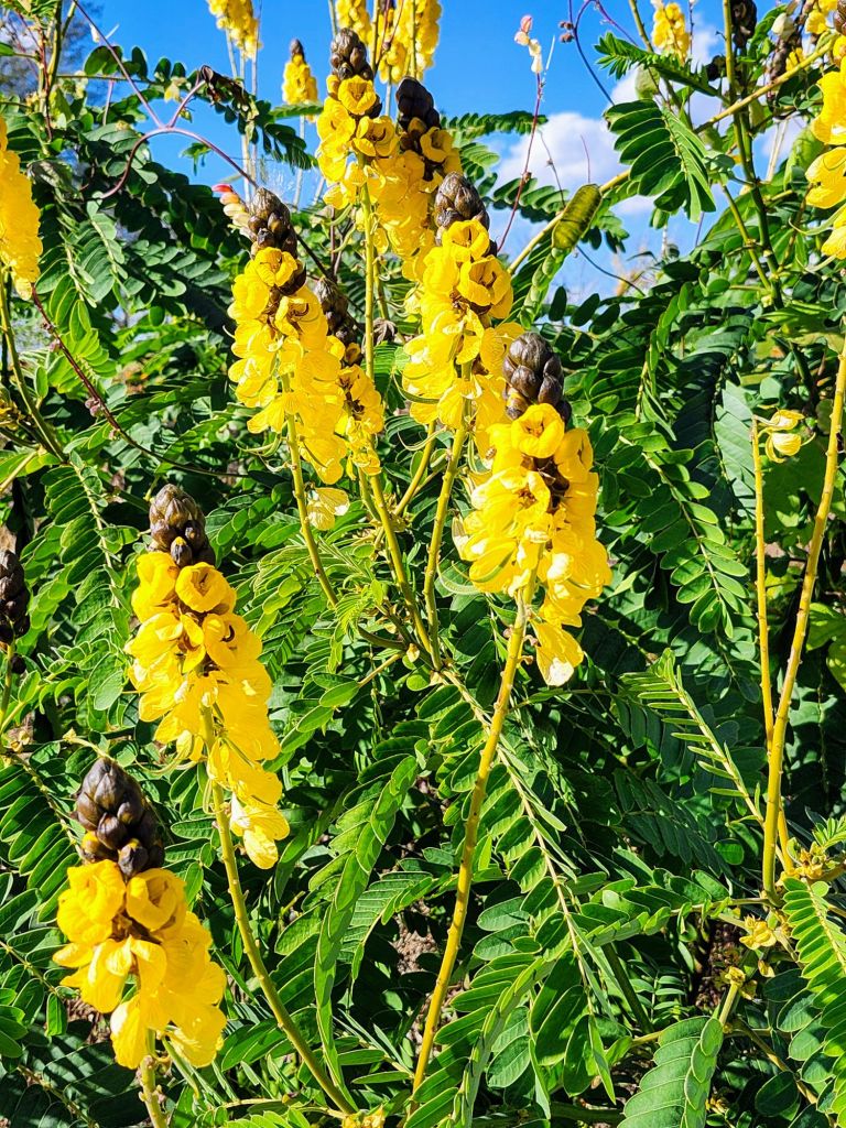 Soon, I’ll begin making plans for the garden for spring. A few sets of seeds might be sown before the first of March, but I’ve pledged to hold off sowing castor beans and popcorn cassia (Senna didymobotrya, below) until a month later so I don’t kill so many tender seedlings while I’m distracted by other spring chores.