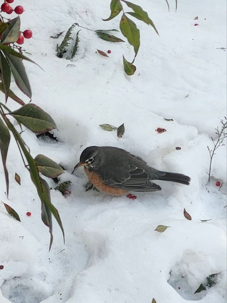 2. Up here in NH I saw my first Robin yesterday after our snow event. I need to plant more holly.