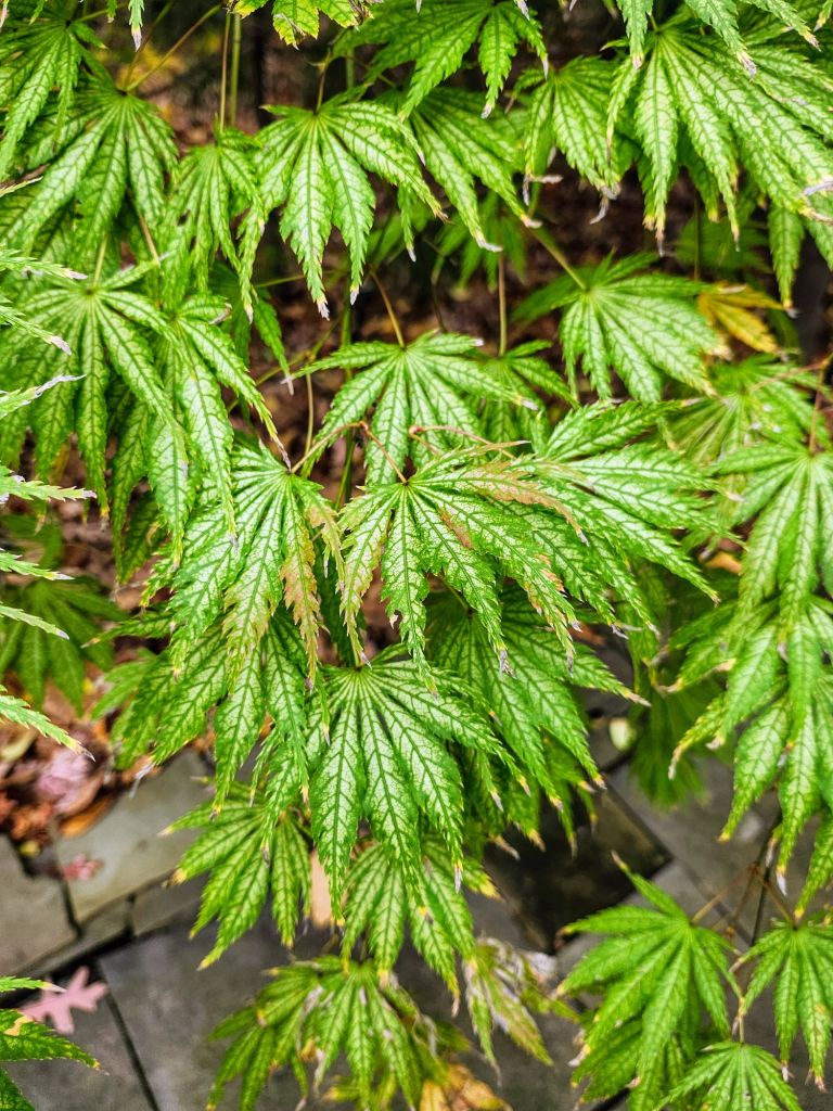 The most current fantasy chops out a Stellar Pink dogwood and a neighboring panicled hydrangea that have become too shaded with no flowers or ones that are thirty feet above and beyond view. There are plants better suited to this spot, and of course, my first thoughts are that another dogwood or redbud must be ideal. Or possibly, a variegated leaf Japanese maple (above) could work here.