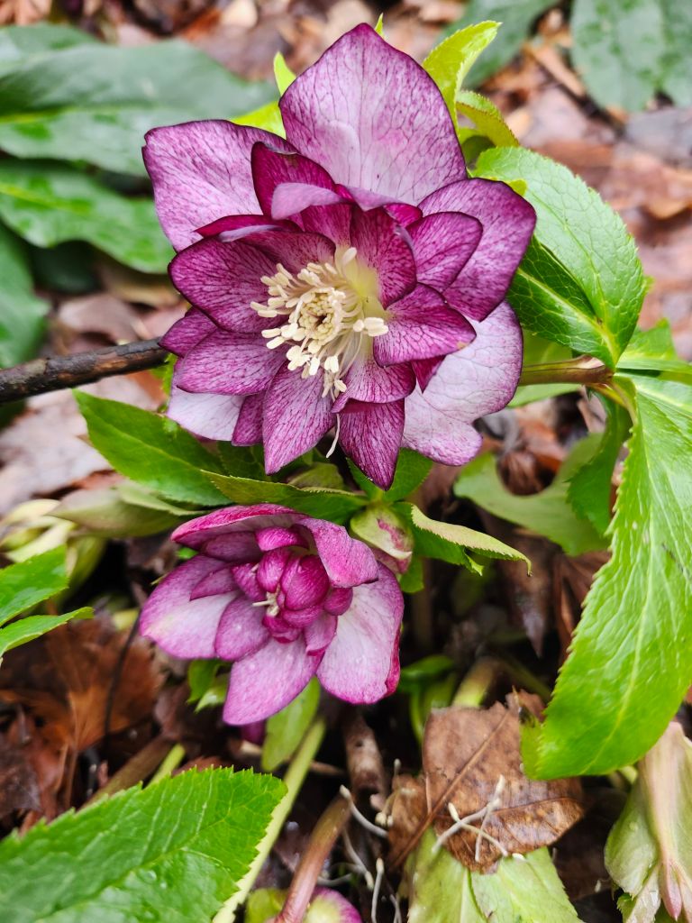 I can feel it. My enthusiasm is growing. On each sunny day, my wandering through the garden has become more focused. As last week’s snow melted, I paused to enjoy flowers of several hellebores (below), lifting buds to check progress on some, and removing a blanket of leaves that covered swelling buds on others. I’m itching to do less contemplating and more work.