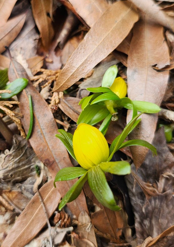 And, it’s turned cold again. But not to worry, temperatures will soon rise. After a lengthy drought summer into autumn, there is no doubt the garden will move into spring with saturated soil. The garden’s slow start will be followed by a glorious early spring. More hellebores will flower quickly without the cover of snow, and snowdrops and winter aconites (above) are poised to bloom with a few days’ exposure to the sun.