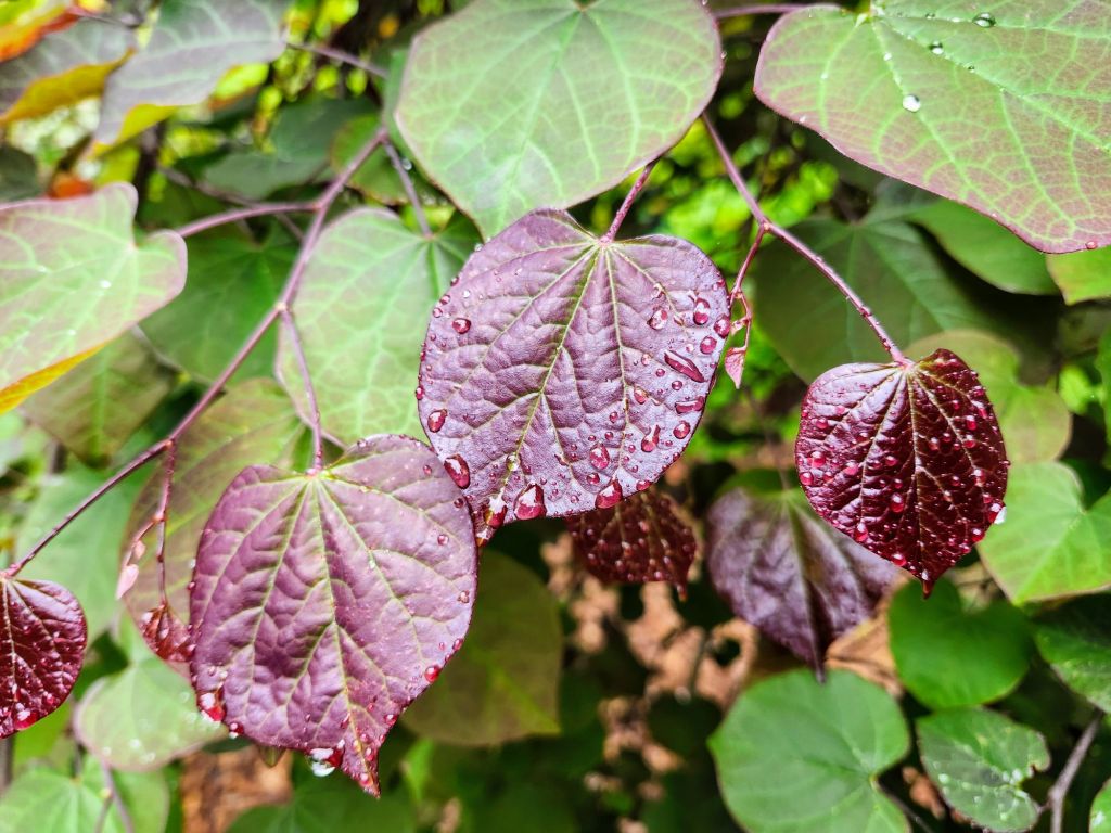 In rare cases, I’ll prune tree branches to allow more sunlight, but mostly, I stand back and enjoy the natural progression. Today, while growth is just beginning on the garden’s perennials, I notice the decline of a shaded portion of the mountain mint (Pycnanthemum muticum, above) in the damp, rear garden. The original area where the mountain mint was planted has become overshadowed by a large katsura (Katsura japonica), two Japanese maples (Acer palmatum), and a redbud seedling (Cercis canadensis, below) from a ‘Forest Pansy’ that perished years ago in the damp ground. The redbud does not share its parent’s colorful foliage, but with a growing collection of redbuds, I haven’t the heart to cull it out.