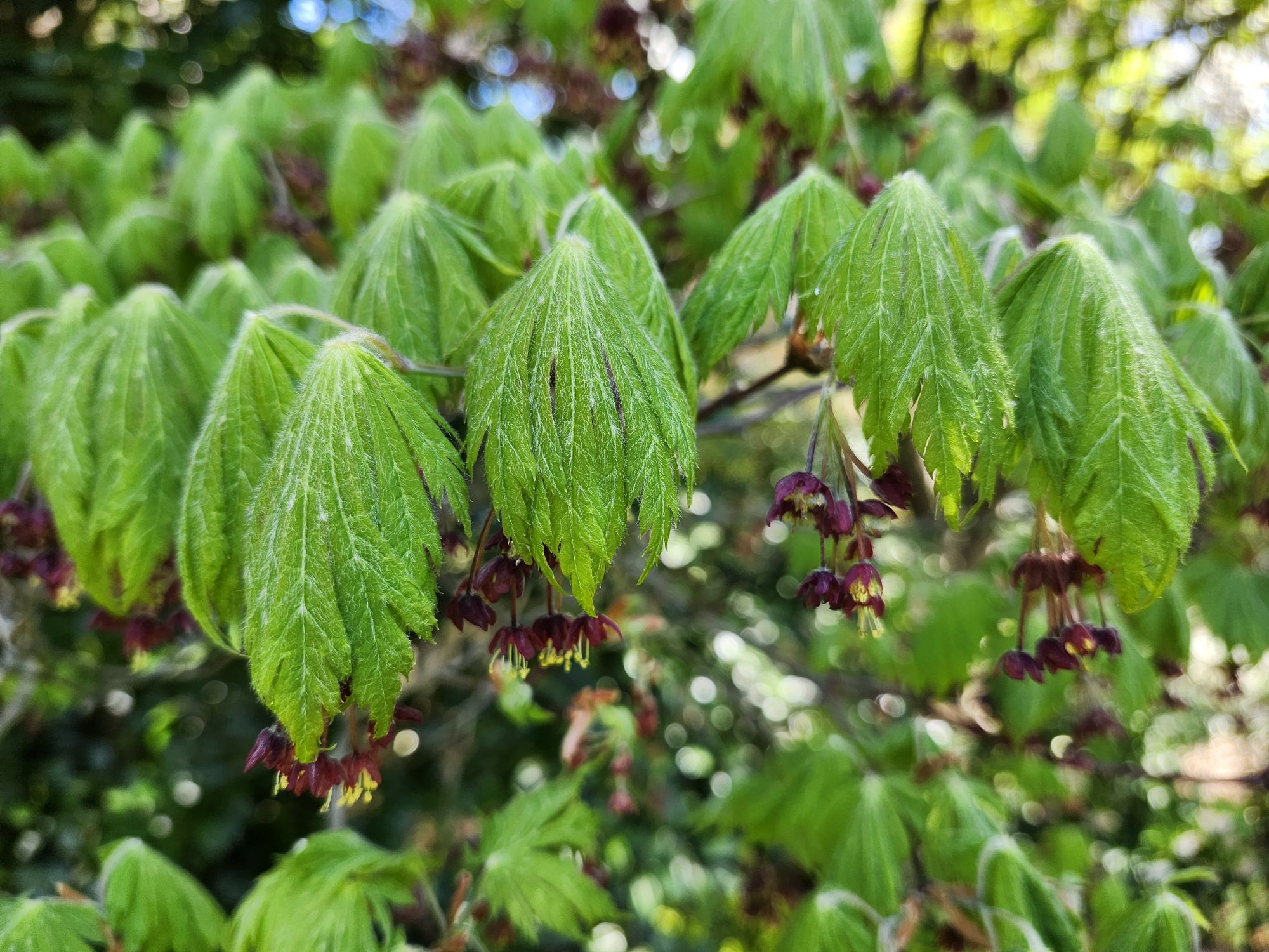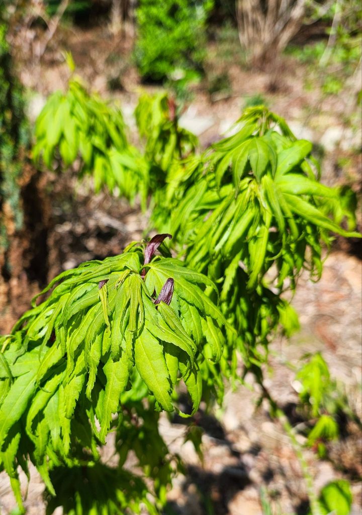 The thirty or forty Japanese maples in the garden come into leaf over a period of weeks. Today, some are leafed fully while leaves of others are just emerging. With temperatures falling into the mid-twenties last night, I’m concerned about ones that are halfway between that are the most vulnerable. Too many times, I’ve seen maples damaged by late freezes. Over two years, a ‘Shaina’ was lost to ill-timed freezes. I hope this is not so serious.