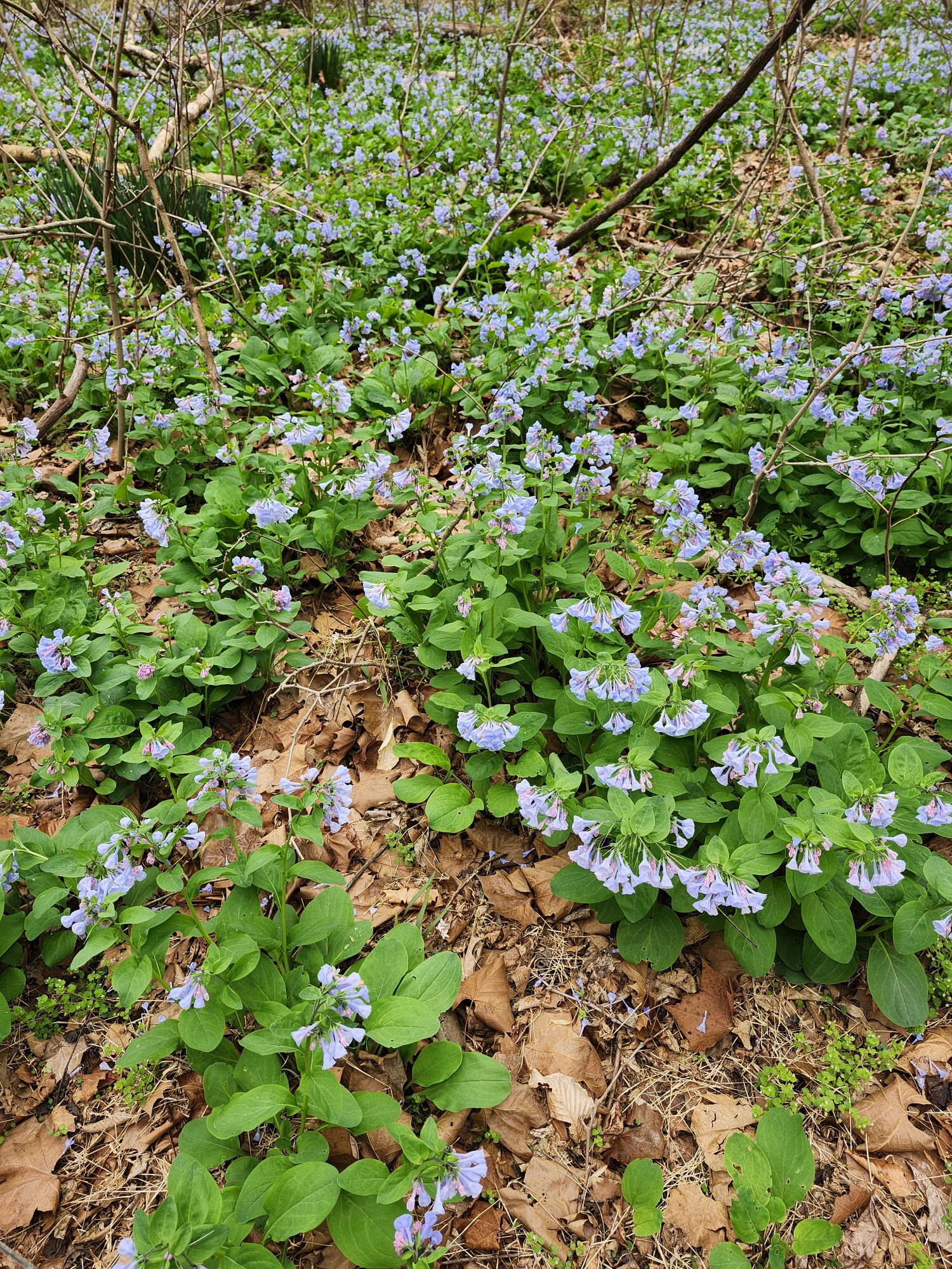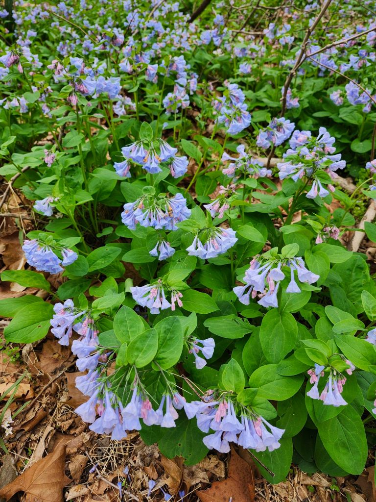 With a rainy Sunday forecast (a week ago), Barbara and I decided we must stay local to make our annual bluebell hike on Saturday instead of our plan to head up into the mountains. Of course, there are a number of trails that we schedule to coincide with flowering of hepaticas, bluebells, trilliums, or orchids (and others), and we were certain this would be the peak week for bluebells (Mertensia virginica, below).