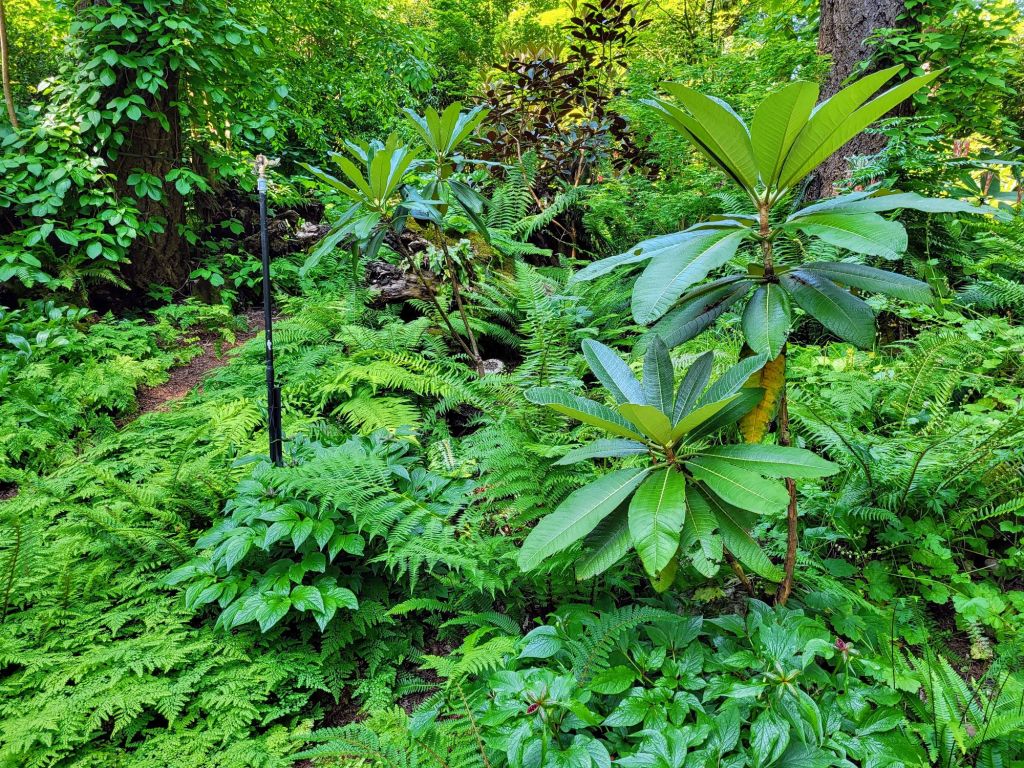 Fortunately, I knew a source to find somewhat unusual shrubs that should thrive in this half shaded garden. I’ve visited a botanical garden outside Seattle, Washington (above and below) a few times on my way to hiking in the Olympic Mountains, and of course, I visited their small nursery even though I knew I couldn’t pack plants to fly back home (I travel light). I saw enough to convince me to order from their twice a year open catalog, and though I’d already ordered earlier this winter, I purchased a handful of shrubs that I am barely familiar with.