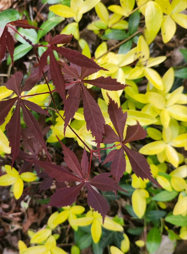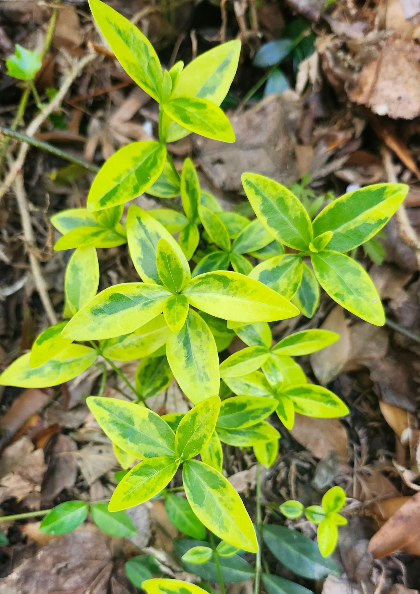 While extolling the virtues of plants commonly accepted as invasive, I must also praise the yellow and yellow variegated leaf periwinkles (Vinca minor) that spread through small areas of the rear garden. Both are mutations of the common green leafed periwinkle that now has a very minor presence, and I must note, one that requires no management except removal of an occasional stem that attempts to sneak across a stone path.