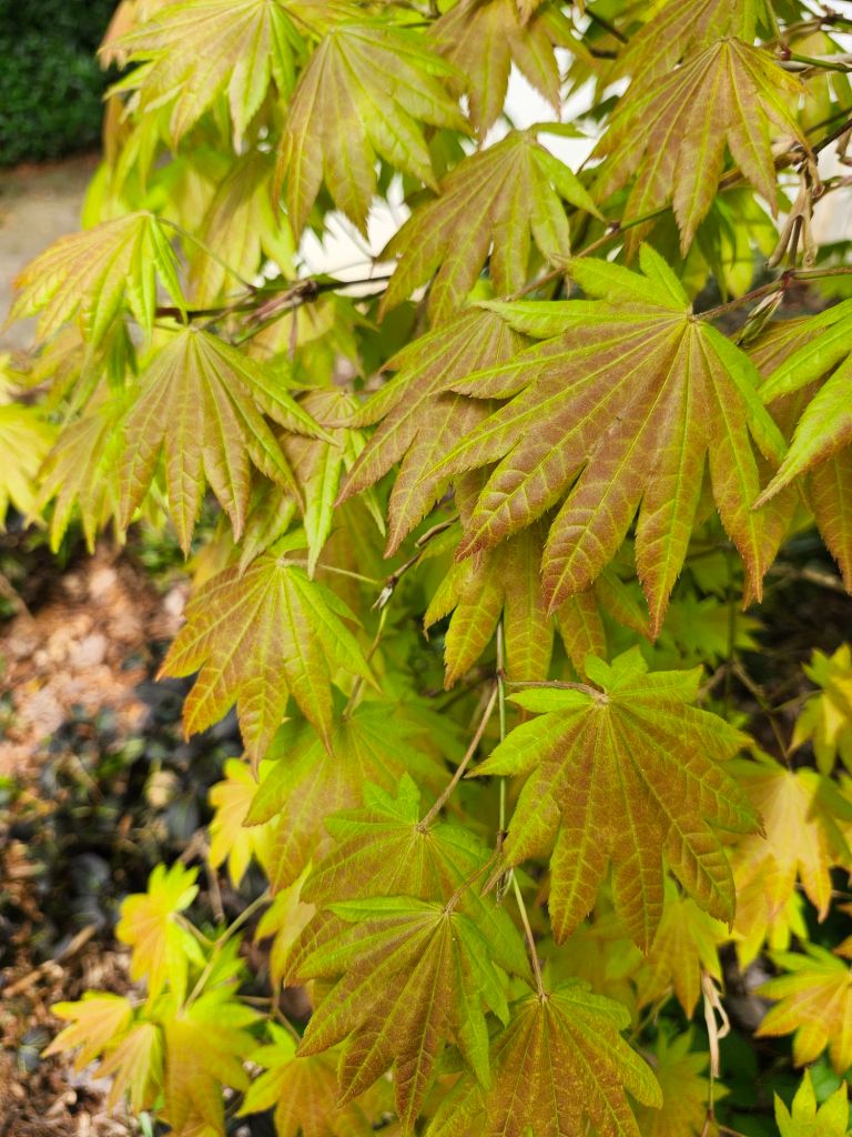 At least a small part of my decision to rip out the old planting and start anew was the spark of inspiration that there would be adequate space for a ‘Moonrise’ Japanese maple (Acer shirasawanum ‘Moonrise’, above) where the spruce was chopped out. I waited years before finding a ‘Golden Full Moon’ maple that was planted in the koi pond garden, and I’d planned and decided against several locations for ‘Moonrise’. One minute, the spruce stayed. The next, ‘Moonrise’ was on its way.