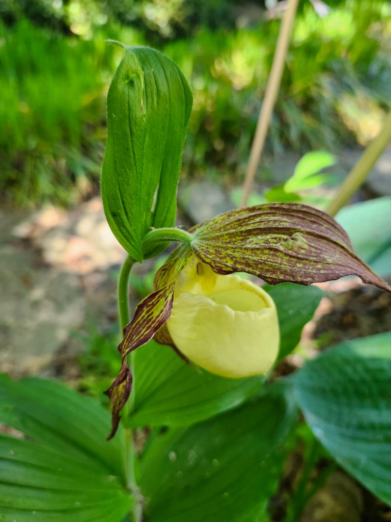 Flowering of several Ladyslipper orchids (Cypripedium parviflorum, below) is an annual event, with buds watched over days until the flower unfolds. If these are to eventually multiply the process is slow, so the gardener must repeatedly appreciate the blooms while they’re here to reward his investment.
