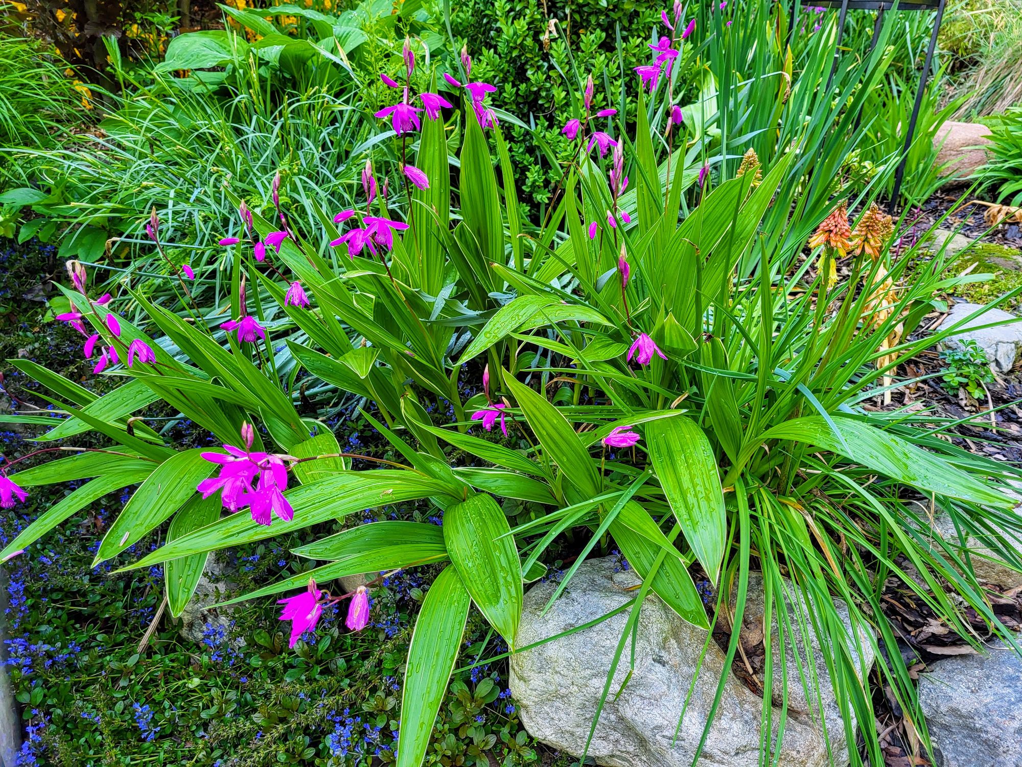 As I do every year, I must not miss the opportunity to highlight the various cold hardy orchids in the garden. Reluctant as I am to purchase expensive small plants, I was somehow convinced years ago to purchase several terrestrial orchids (Bletilla striata, below). The sum now seems a pittance while the orchids have multiplied considerably. Gardeners discouraged by the initial cost are encouraged to give them a try. I was not provided this helpful advice, but your expenditure will be repaid many times.