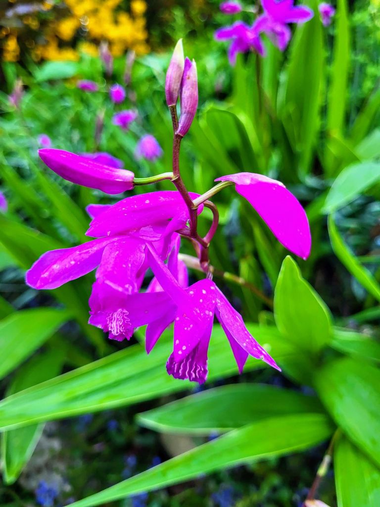 Predictably, after dividing and transplanting about the garden, and potting giveaways, I too often dismiss the orchids as ordinary. The unfortunately timed freeze a few weeks back damaged some newly emerging leaves and flower buds, reminding me that no matter how easy, the terrestrial orchids must be treasured.