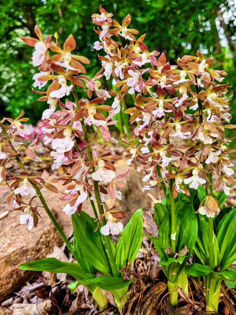 On a recent visit to one of our son’s gardens, he asked about dividing his thickening clump of Bletilla orchids to spread them into other areas. Of course, his original plants came from our garden, and most likely they were dug for a Mother’s Day visit. Dig them, get them in the ground, and water them. I might not dig them in July, but Bletilla and earlier flowering Calanthe orchids (Calanthe discolor, below) are nearly foolproof.