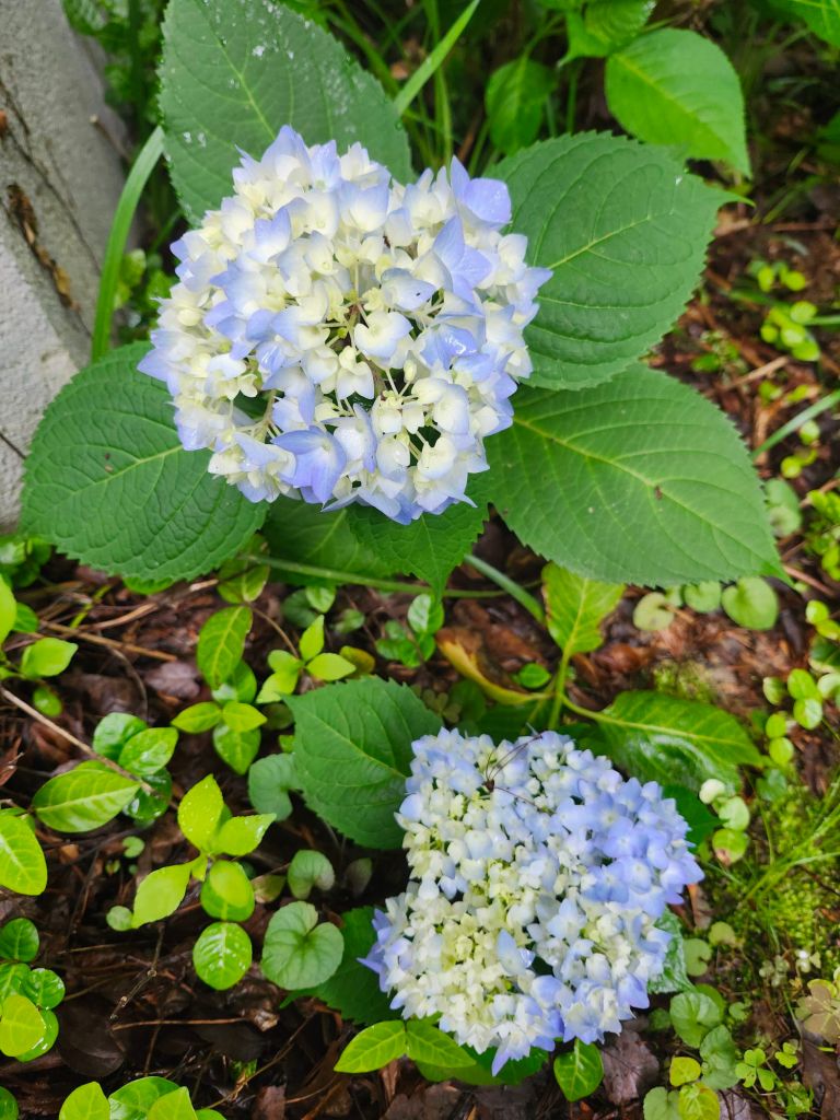 Old wood mophead flower buds that escaped cold damage were well protected or close to the ground and near the house. In any case, despite my cautions about planting mophead hydrangeas, I’m happy to see flowers.