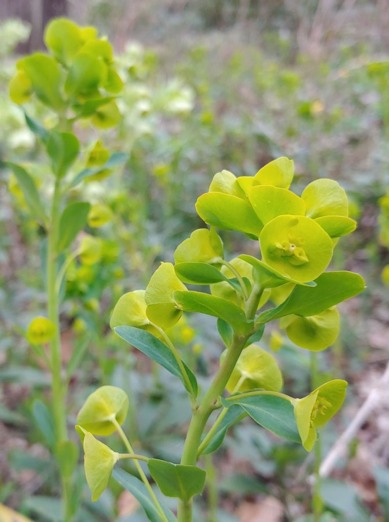 The somewhat aggressive Robb’s spurge (Euphorbia robbiae, above) occupied a significant area of the side garden until recent years. Its spread posed no problems to neighbors, and while it could be easily controlled, I encouraged it. But, now the spurge is on its way out. Scattered patches remain, but it must have become too shaded, or too something for it to thrive.