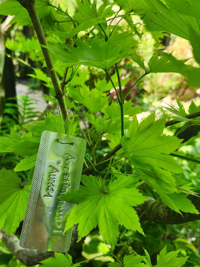 I can almost identify the thirty-plus Japanese maples in the garden and all of the redbuds and dogwoods, but I’ve been disturbed a few times when a name is not readily recalled. So, as discreetly as possible, engraved metal tags (below) have been attached to maples, redbuds, and dogwoods, and metal stakes hidden behind the majority of ferns that I could identify.