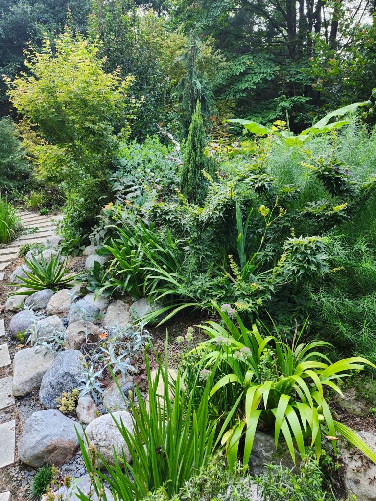 When the temperatures cool in September, I’ll plant a tree or two to replace the canopy occupied by the magnolia. The garden has changed with the magnolia’s loss, but soon enough it will be filled and back to a somewhat controlled degree of wildness.