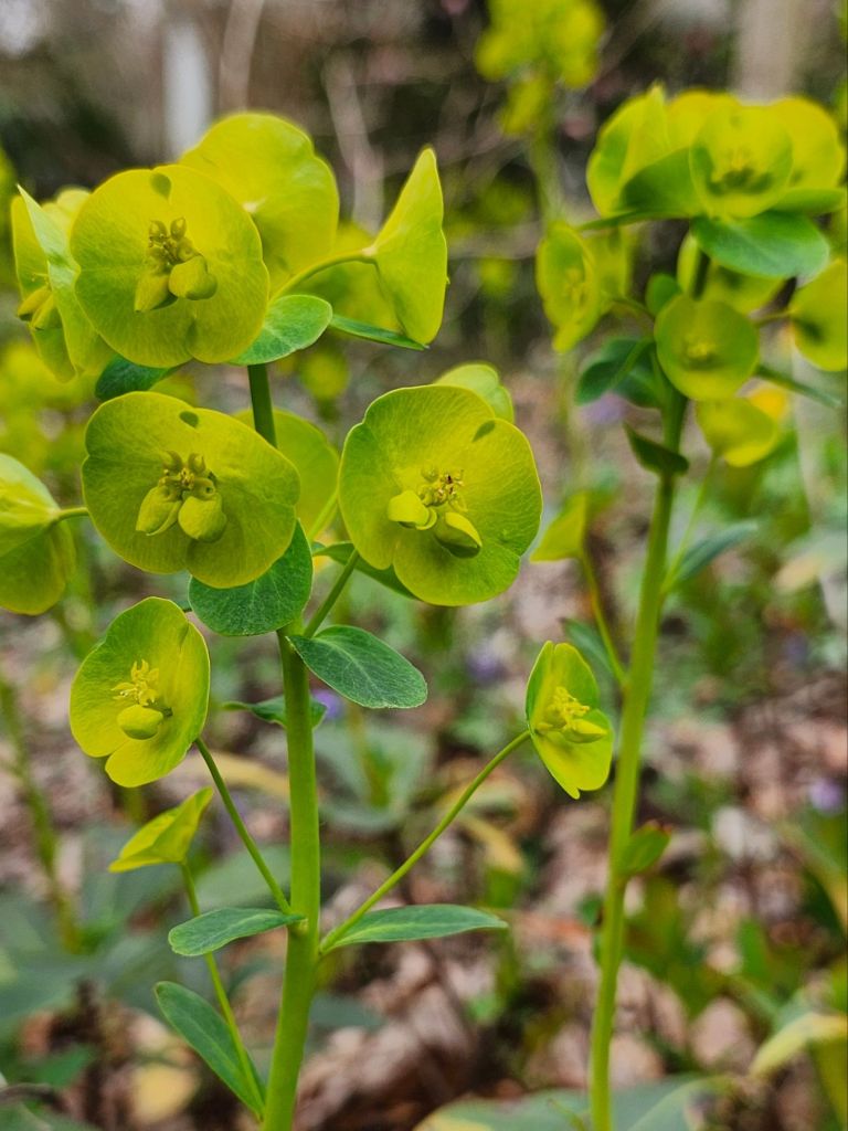 Until recently, the spurge covered most of a few hundred square feet and spread slightly across a stone path. Now, the smaller area is all that remains, with a scattered plant or two standing beneath the tall camellias. I suspect that the side garden was becoming too shaded, but also that the month-long dampness killed the remainder. A dense planting now looks bare, so something must be planted in a hurry.