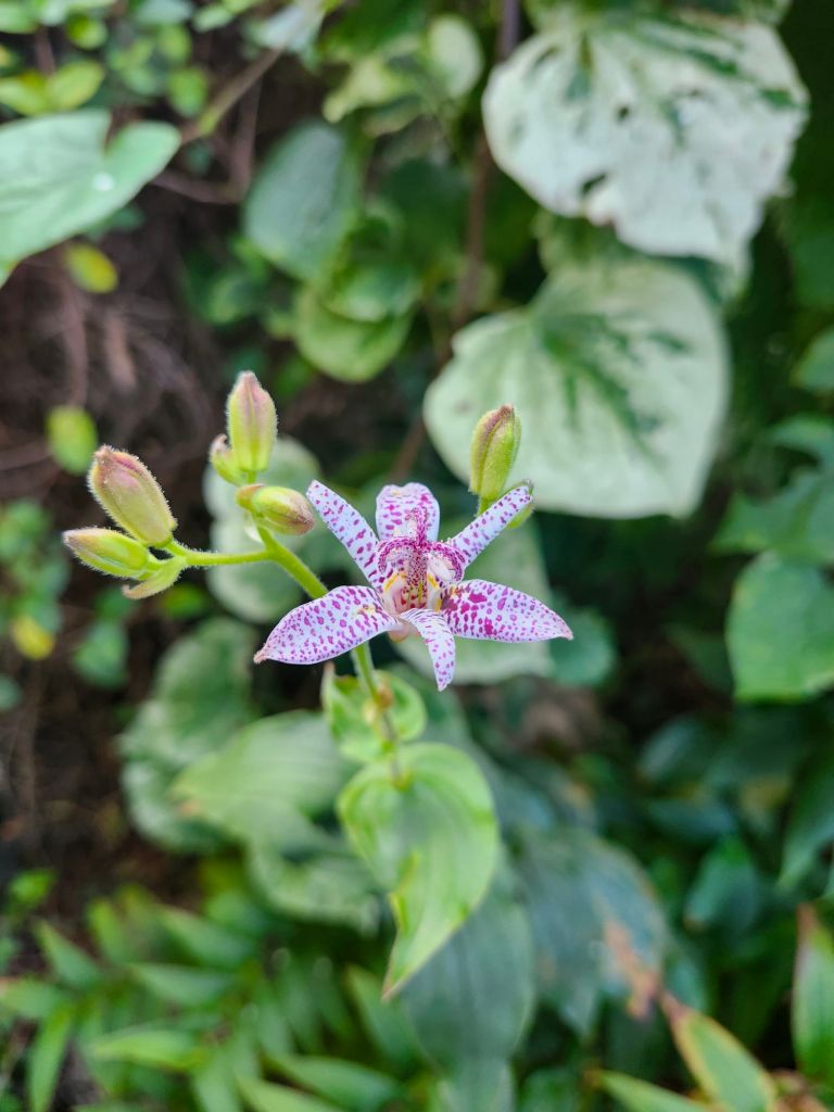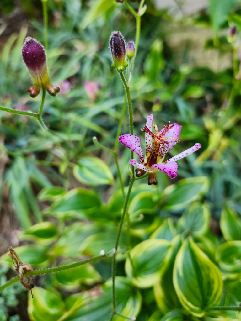 In the last picture with the Trycirtis, is that a weeping Cercis “Whitewater” in the background? (It’s holding its variation really well.)