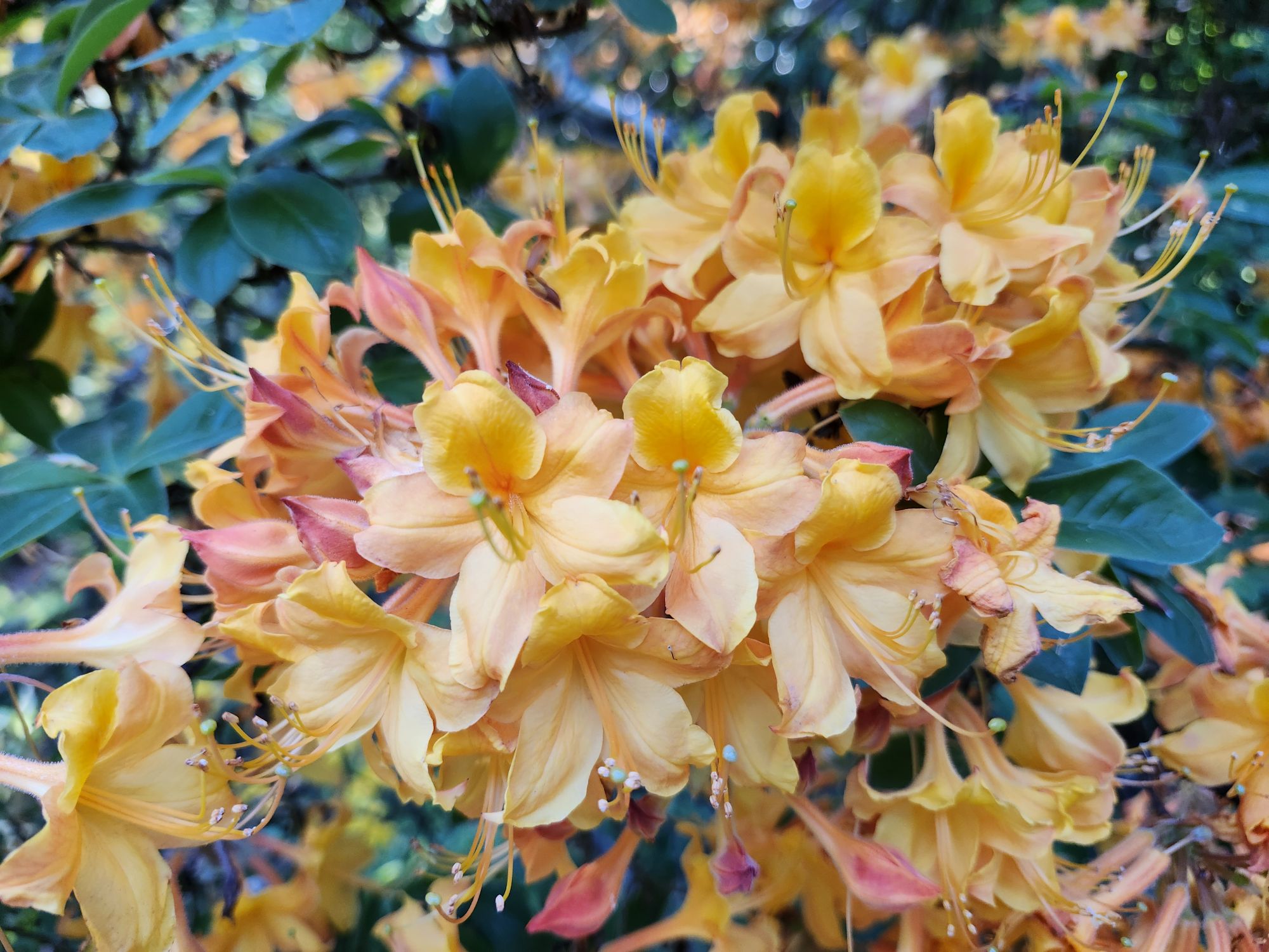 I’m seeing scattered flowers on several of the reblooming Encore azaleas (above), though most will flower in late September and October. Years ago, I trialed Encores to determine ones with the best autumn flowering. A few remain that rarely display an autumn bloom, and for that matter, they are also disappointing in spring, so the problem could be environmental and not an issue with the variety.