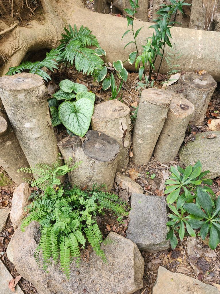 A brunnera and Maidenhair fern were added to a few transplants in the stumpery.
