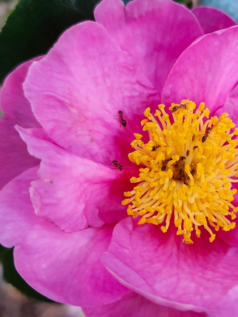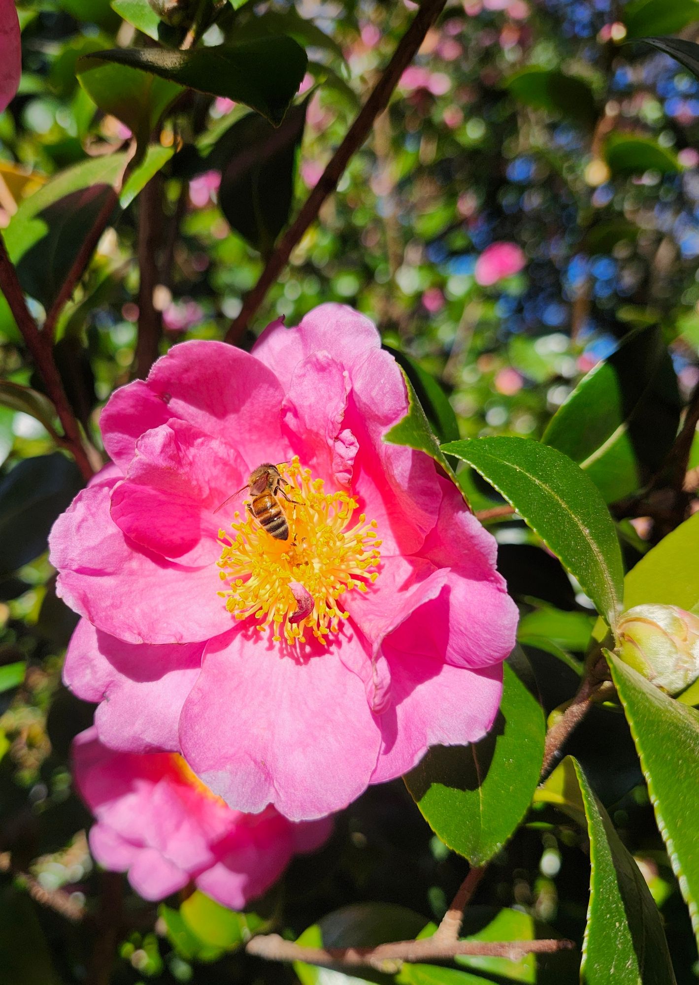 Several frosty nights quickened the garden’s seasonal change, but this was noticeably accelerated by one night of freezing temperatures. Many hostas and several late blooming perennials have collapsed, while bees and ants remain hard at work pollinating autumn flowering camellias (below) that will continue into late November.