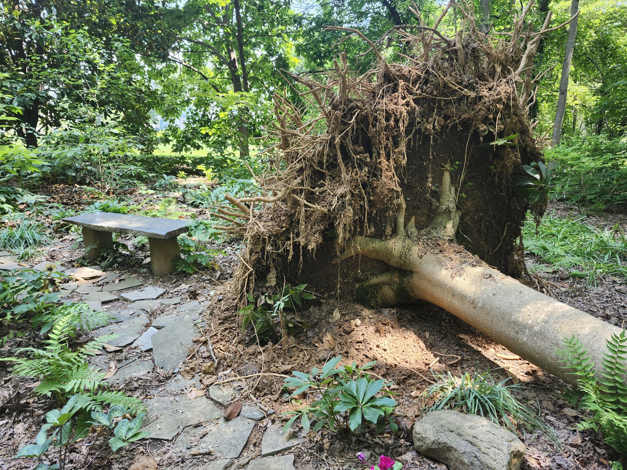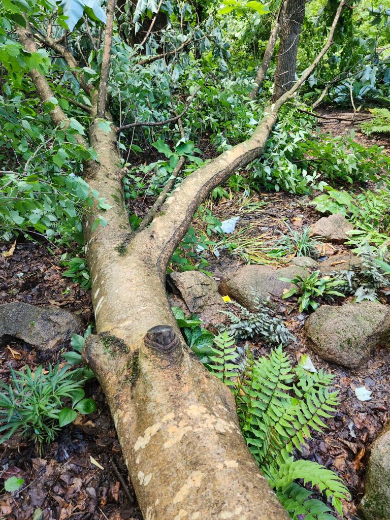 The magnolia fell on the group of sweetshrubs and half of a fern.