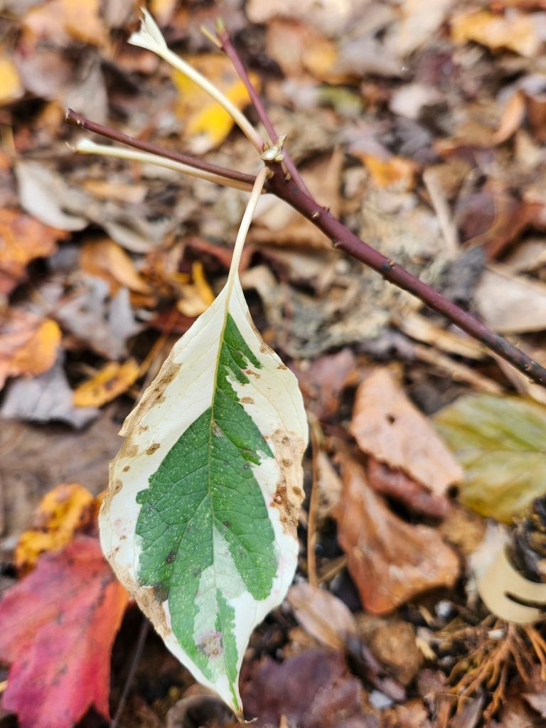 The newly planted Wedding Cake dogwood (Cornus contoversa ‘Variegata’) was immediately discovered by grazing deer. In early autumn I cease my irregular routine to spray a repellent to protect hostas, but there are evergreens that are more vulnerable as leaves fall. I’ll spray early in November, and hungry deer a year ago showed me that a second, late winter repellent spray is needed.
