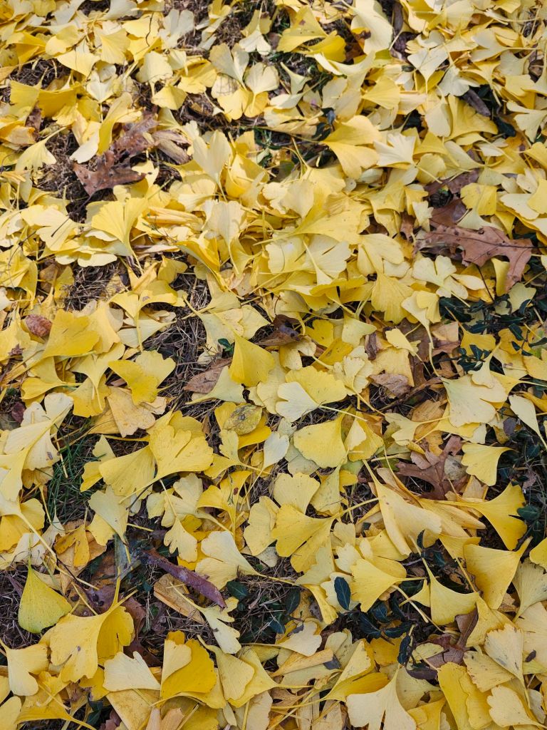 The leaves of the garden’s ginkgos (Ginkgo biloba) have fallen, for several days to become a glorious yellow carpet in the rear garden (below). I fear that the largest ginkgo will one day be overwhelmed by a more vigorous blackgum (Nyssa sylvatica), but it steps to the forefront in early autumn.