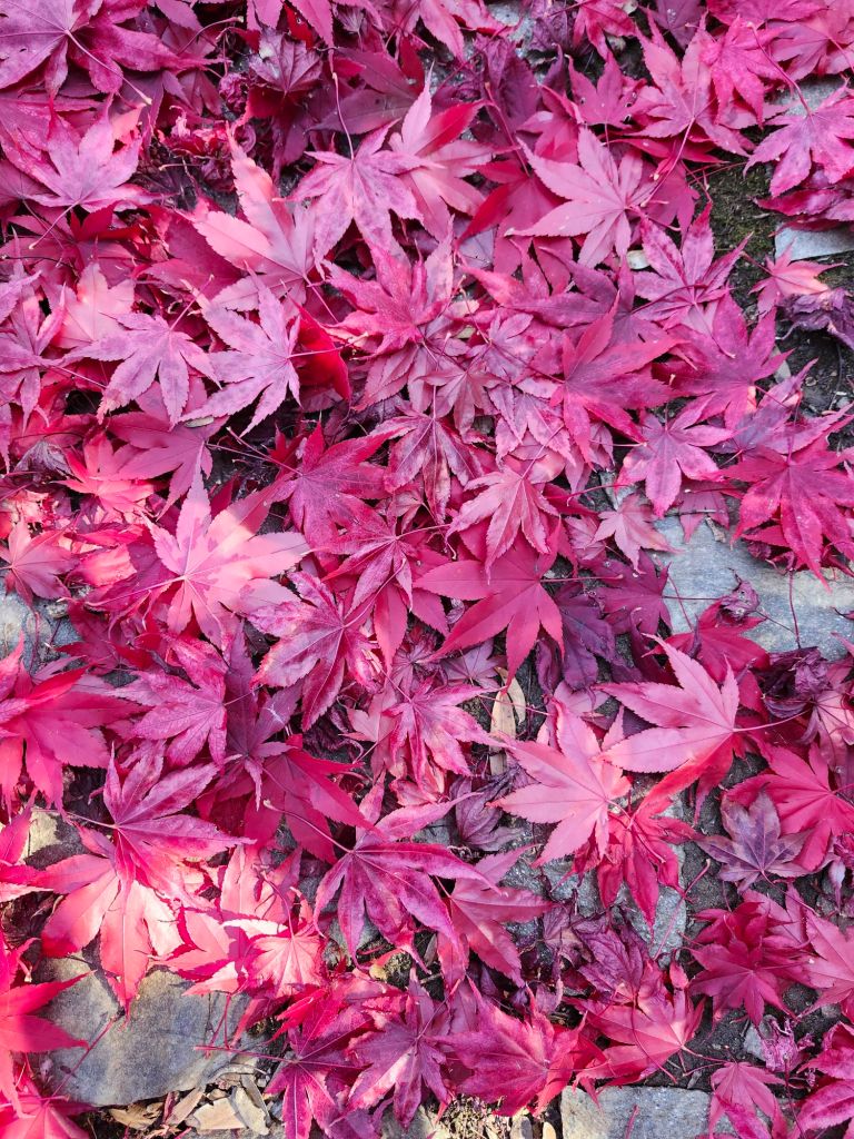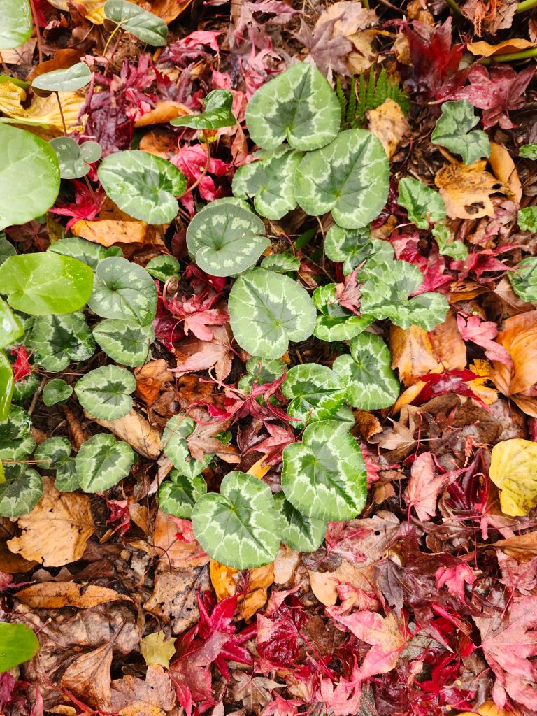 Otherwise, there’s nothing to do. Somehow the Cyclamen (Cyclamen hederifolium, above) remain uncovered despite deep piles of fallen leaves from the ‘Bloodgood’ and ‘Seriyu ‘ Japanese maples that blanket the front walk. The Cyclamen have spread slowly and a few were still flowering until last week.