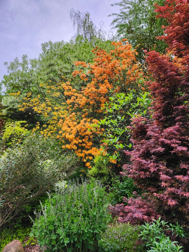 Without the magnolia, I was happy to see more sunlight, but to my tree obsessed eye the lack of canopy was unacceptable. A few shrub dogwoods filled some open ground, and a Flame Thrower redbud (Cercis canadensis Flame Thrower) will help fill the glaring void. Of course, it will shade only a fraction of the opening, so the dogwoods and transplanted deciduous azaleas should be happy.