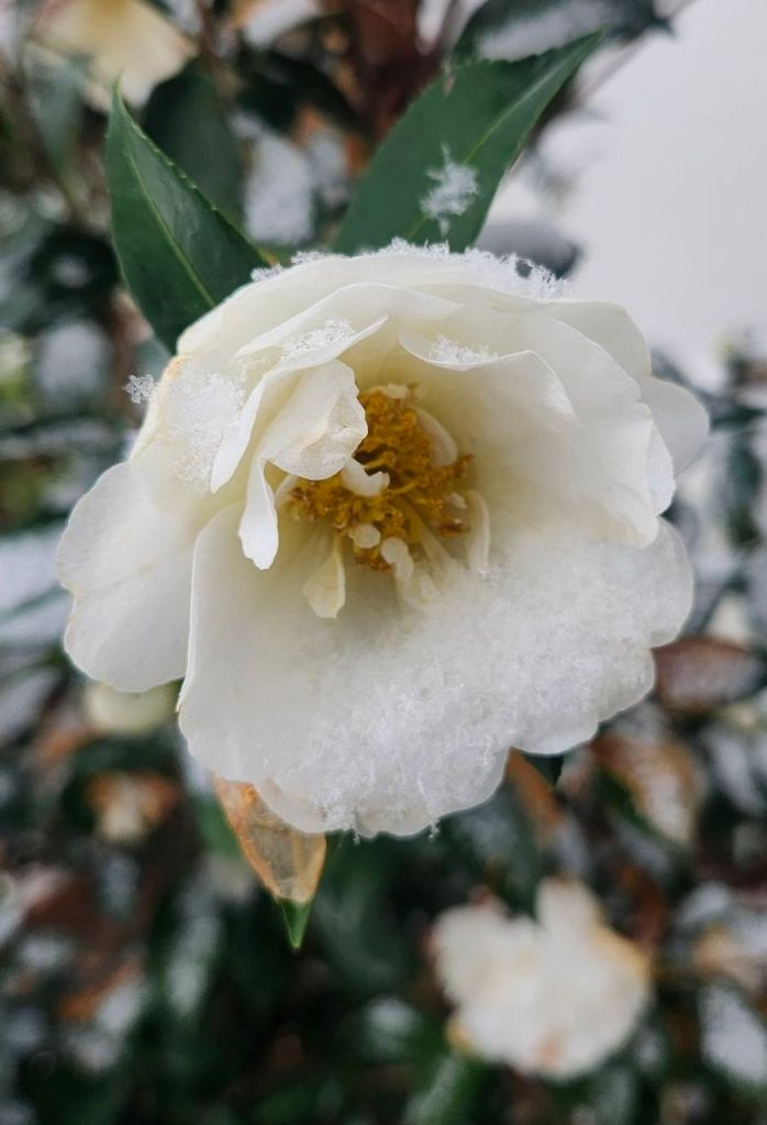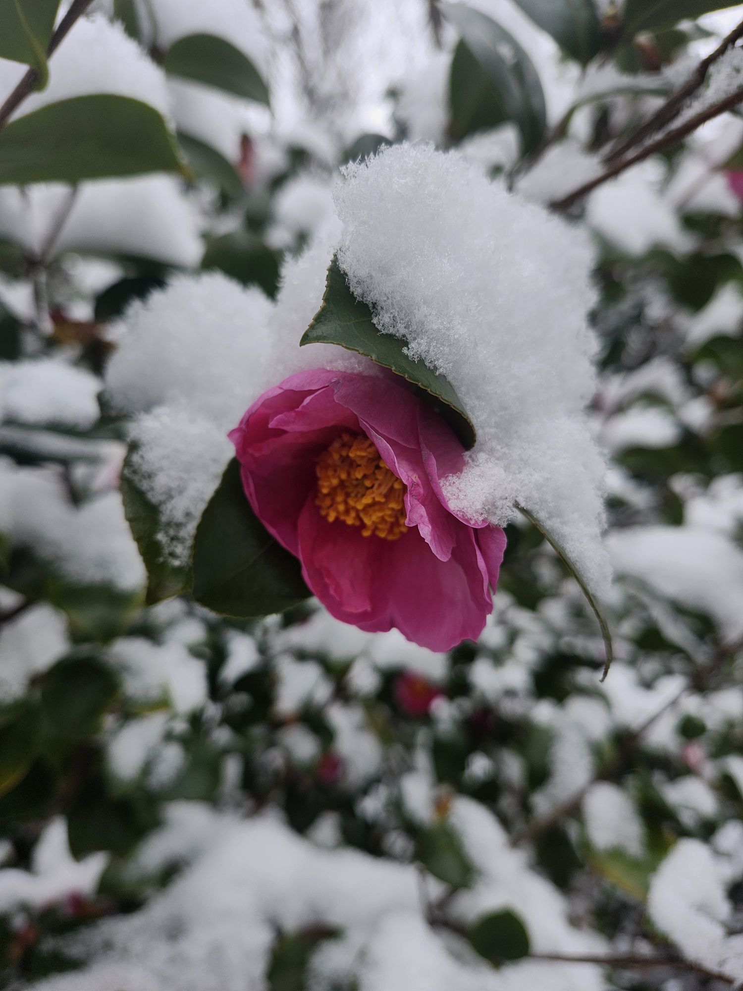 With infrequent snowfall in northwestern Virginia I am obliged to document the garden’s blooms under the thin blanket of snow that covers the garden on this chilly afternoon.