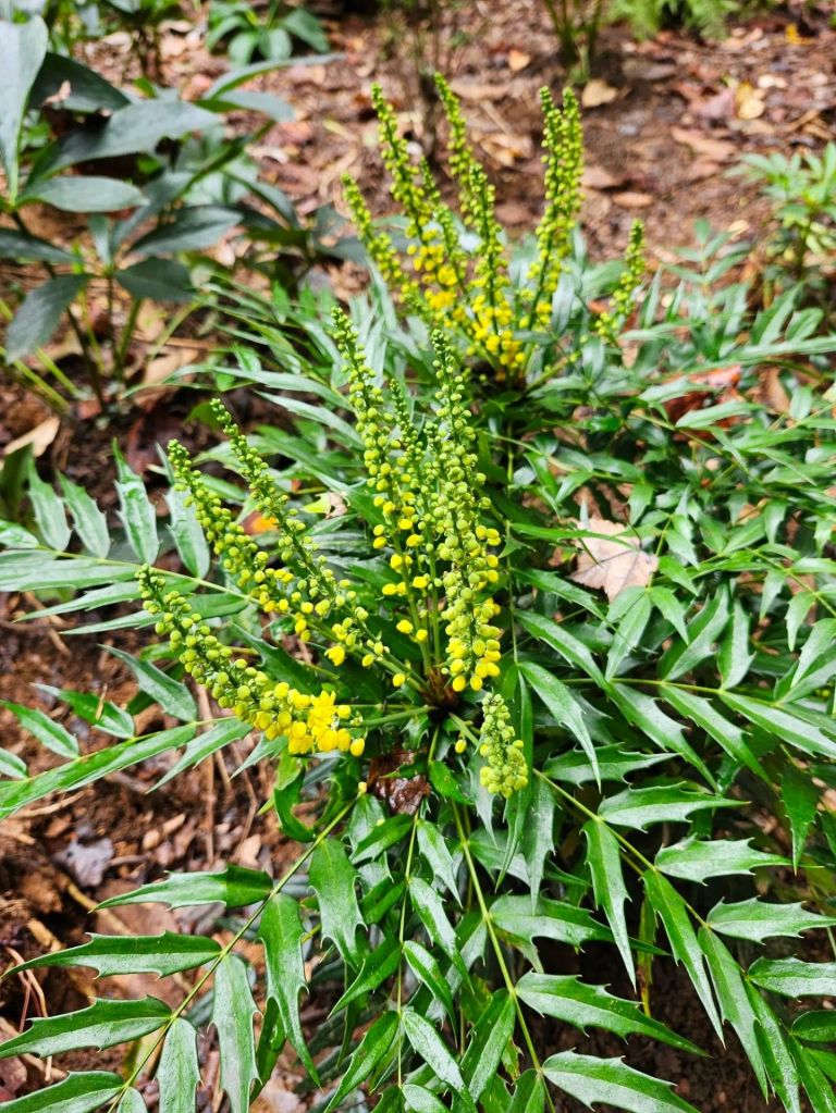A few mounding evergreens will be added in spring when the garden centers restock. I’ll be planting a few mahonias to continue the collection that was paused years ago when appropriate spaces were tight. Some are questionably cold tolerant, including ‘Indianola Silver’ (Mahonia eurybracteata ‘Indianola Silver’) that has been ordered for mid-March delivery, though similar mahonias have perished following a few years of steady decline. I’m presuming that this space is protected from the worst exposure to our winter cold, though my understanding of microclimates is questionable.